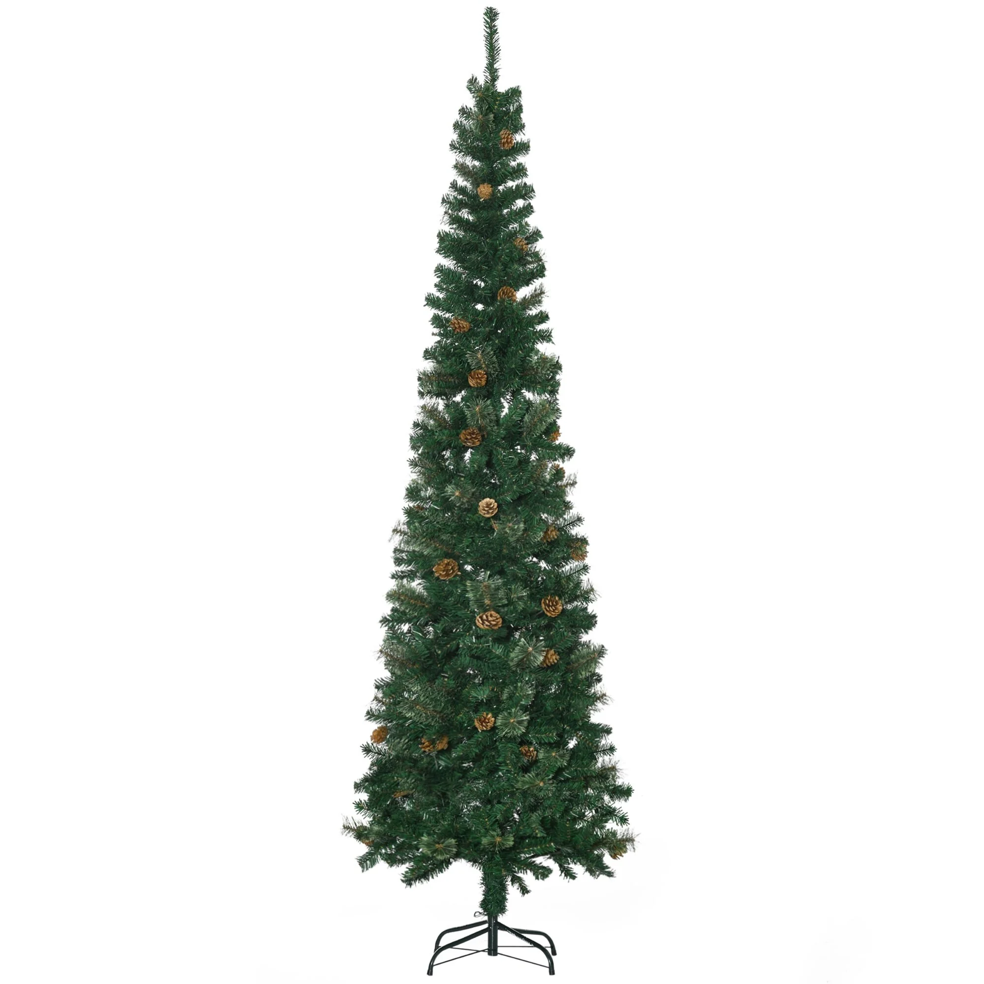 7.5' Tall Artificial Slim Pine Christmas Tree with Realistic Branches, Pine Cones, and Metal Base