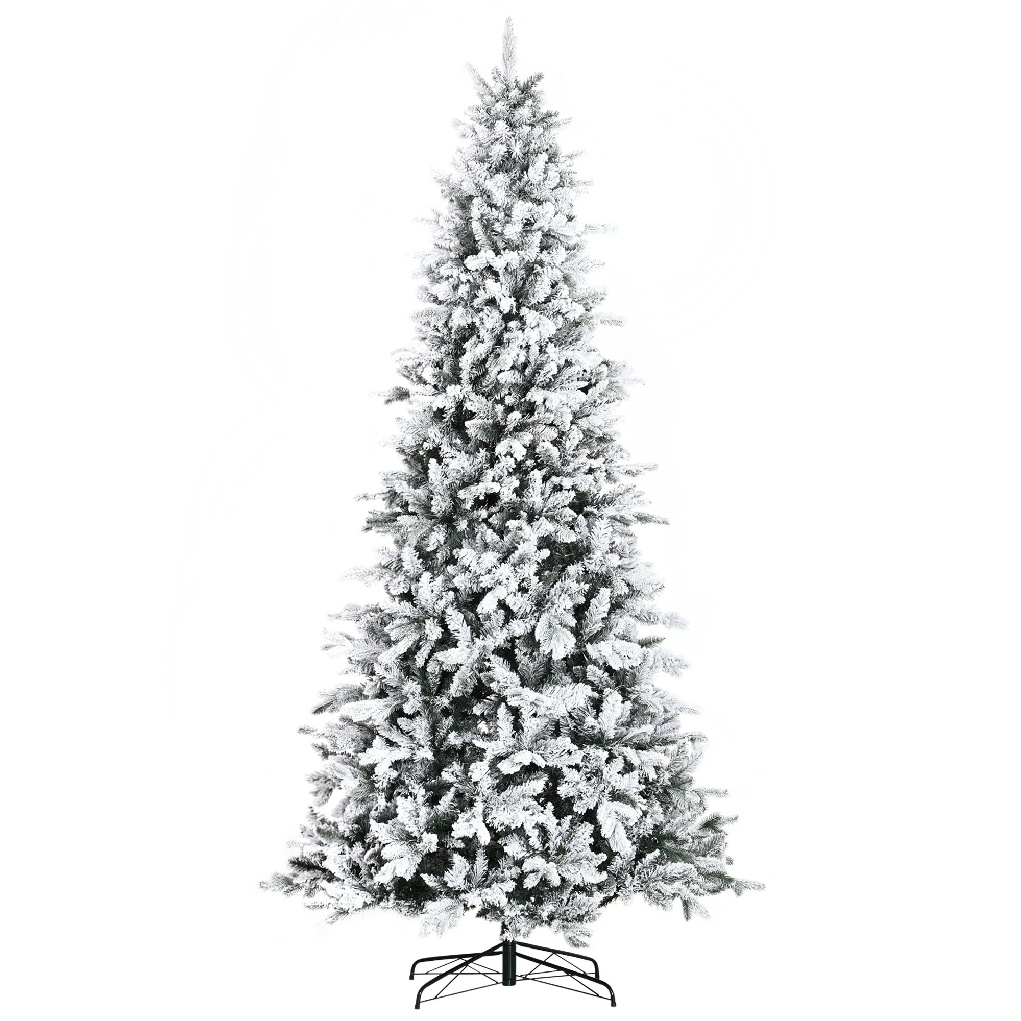9' Realistic Snow-Flocked Slim Pine Christmas Tree with 1084 Tips and Durable Metal Stand
