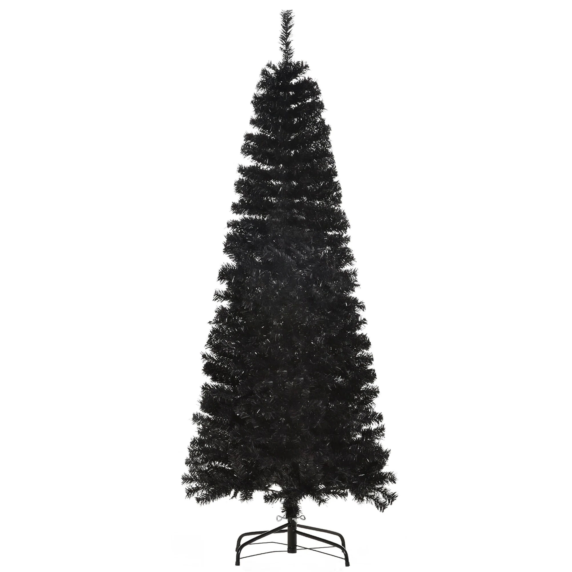 6ft Slim Black Douglas Fir Christmas Tree, Unlit Pencil-Style Halloween Tree with Realistic Branches