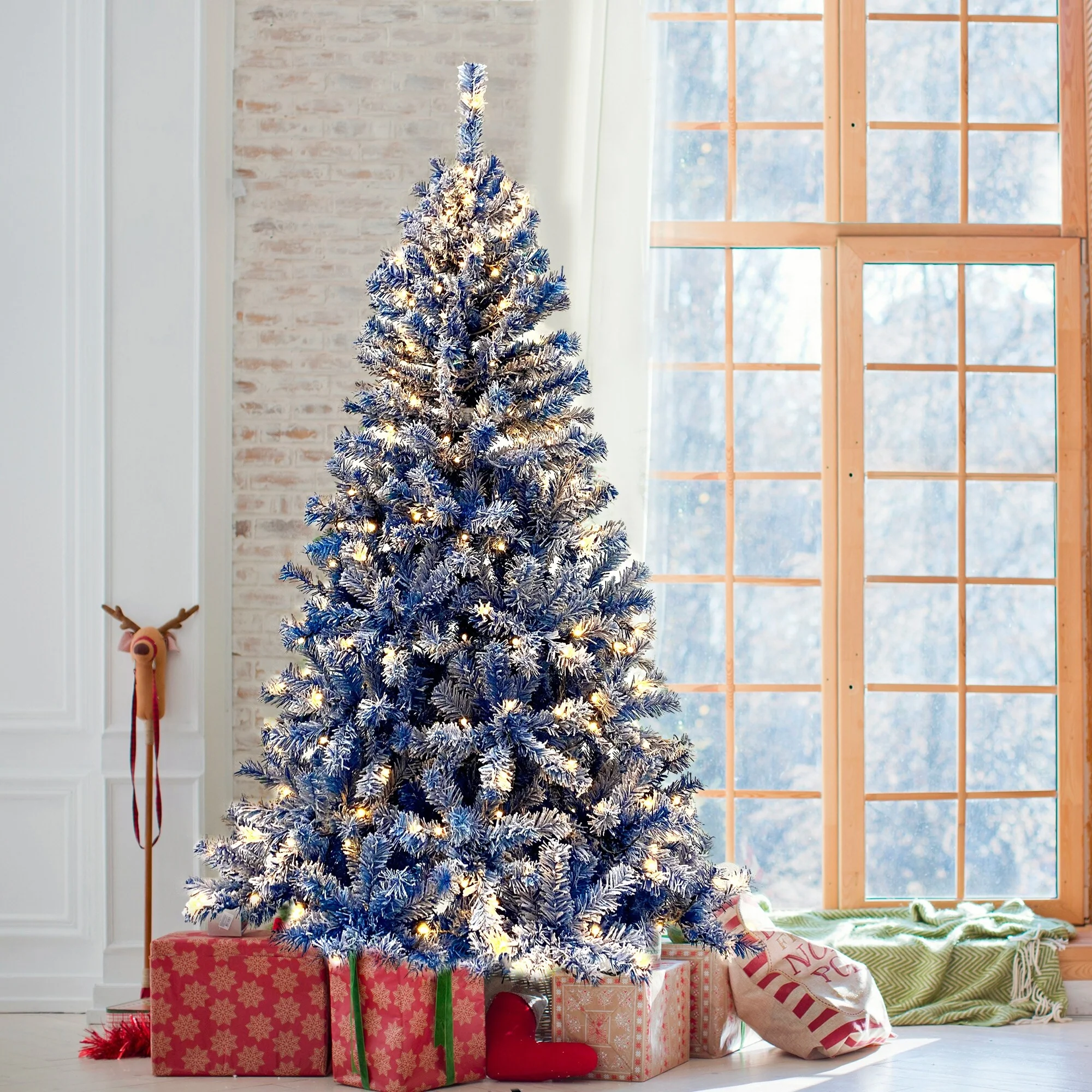 6ft Slim Pre-Lit Douglas Fir Christmas Tree with Snow-Flocked Branches, 250 LED Lights, Steel Base
