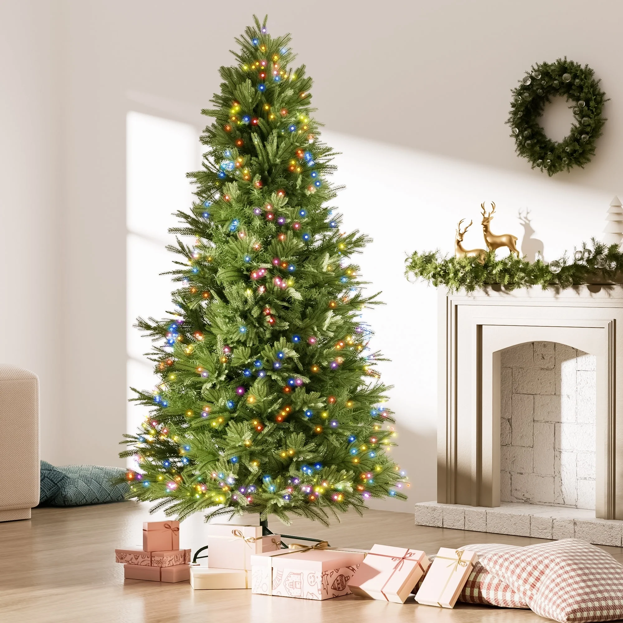 7FT Prelit PVC Christmas Tree with 400 Lights, Memory Wire Design, and Automatic Structure