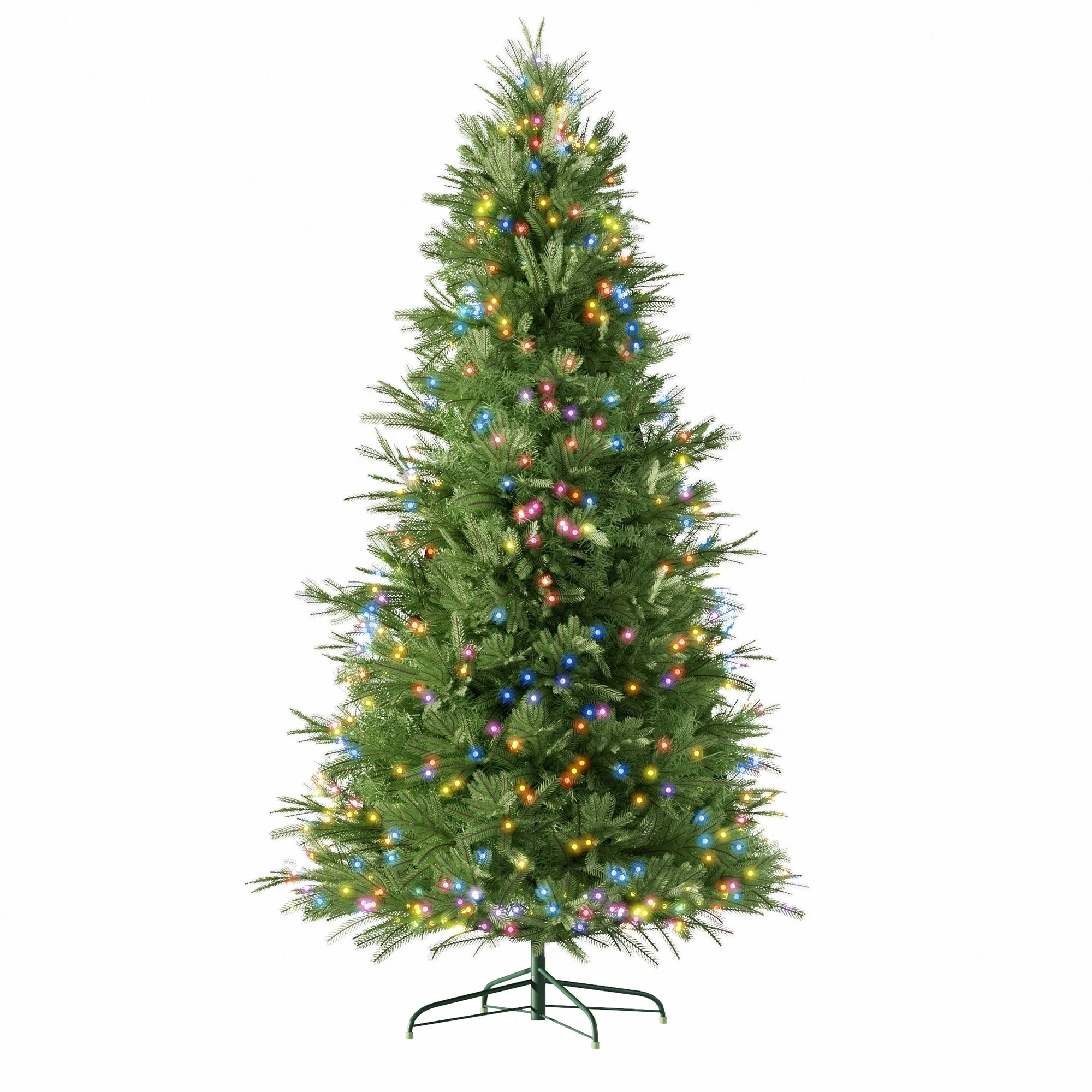 7.5ft Prelit Christmas Tree, 2286 Tips, 550 Multi-Color LEDs, PE & PVC, Metal Stand, Indoor Holiday Decor