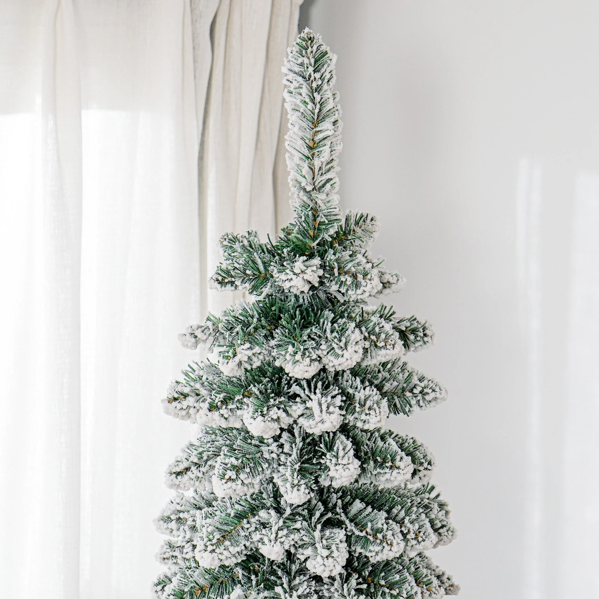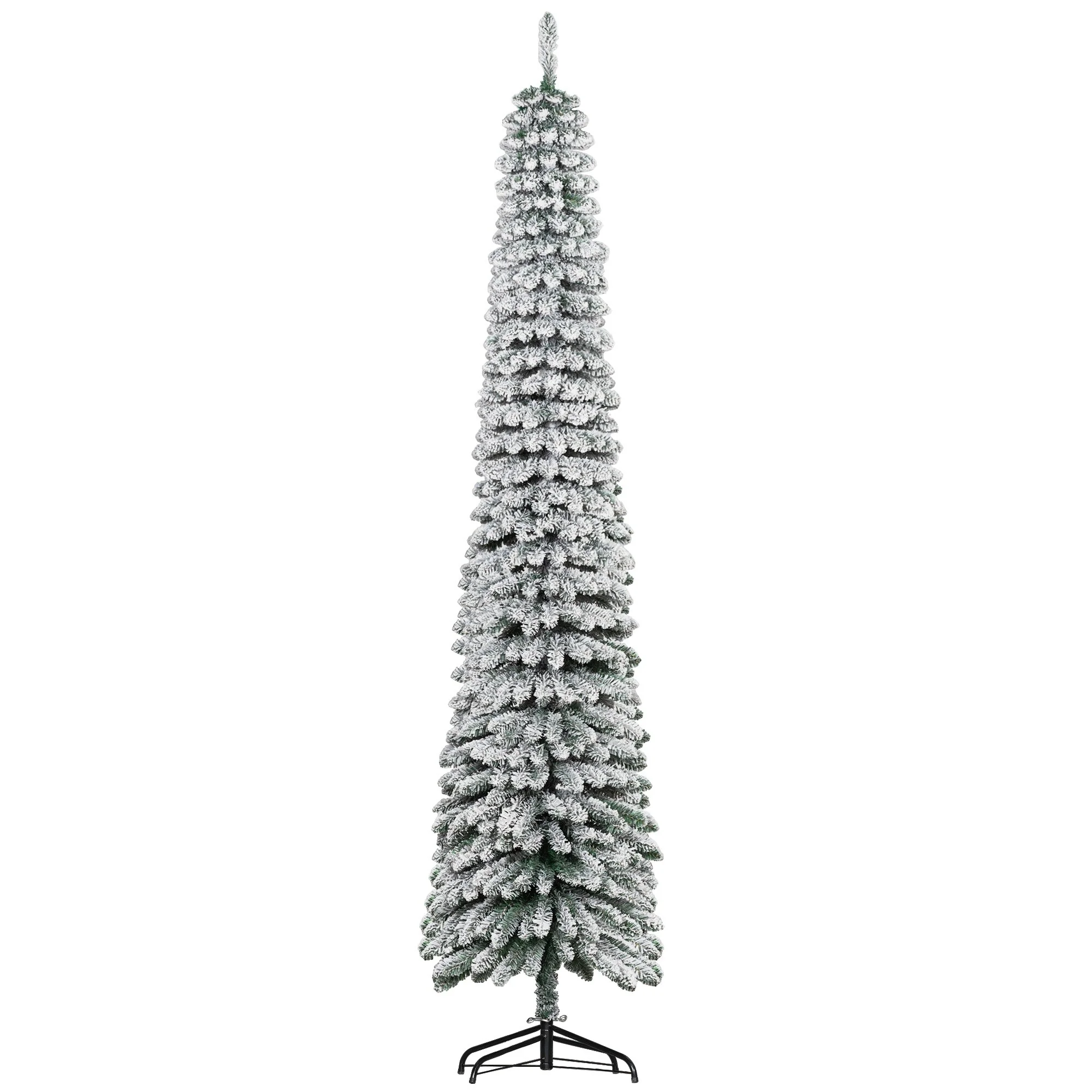 8ft Slim Pencil Artificial Christmas Tree with Snow Flocked Tips, 603 Branches