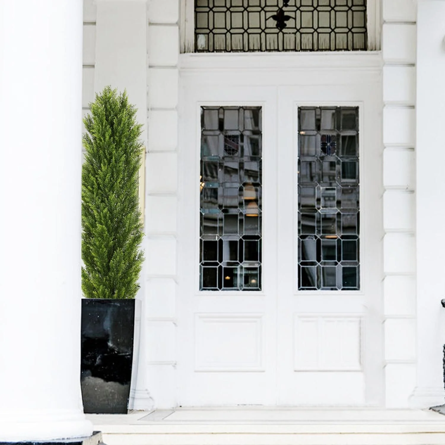 Faux Boxwood Pine Greenery Plants - Artificial Cedar & Cypress Plants (2pcs Set)