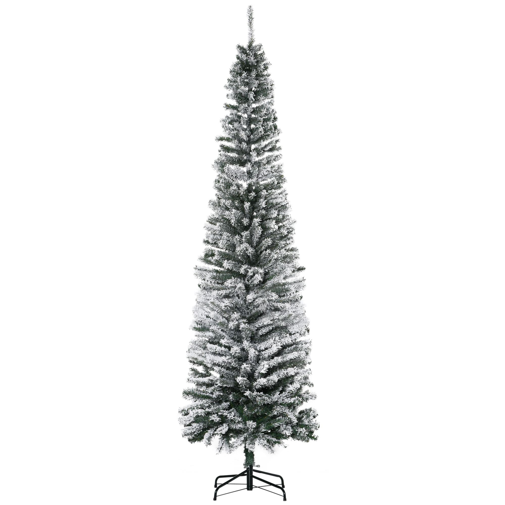 7.5' Snow-Flocked Slim Artificial Christmas Tree with 738 Tips, Unlit and Realistic