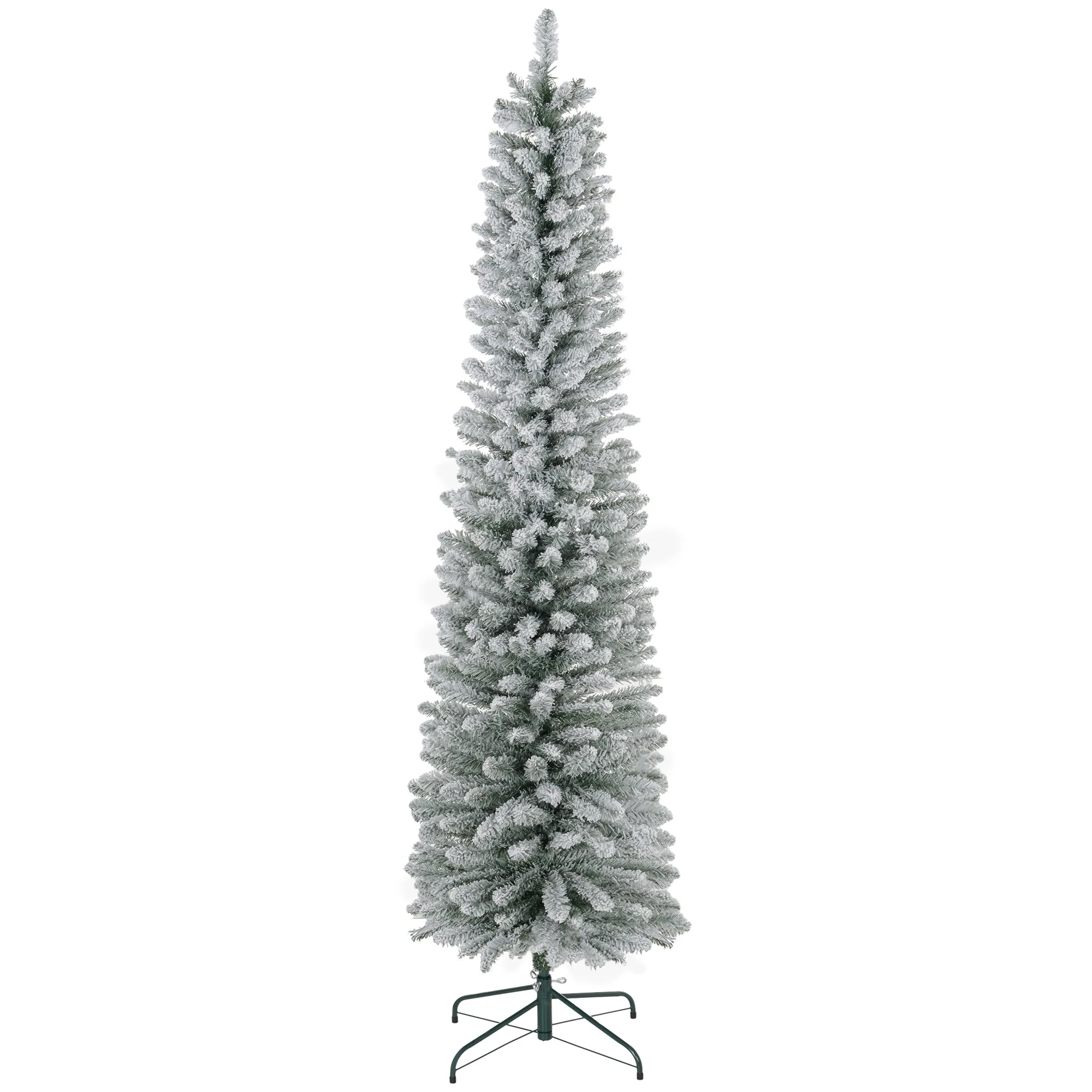 7ft Snow Flocked Pencil Christmas Tree, Easy Setup with Sturdy Metal Base