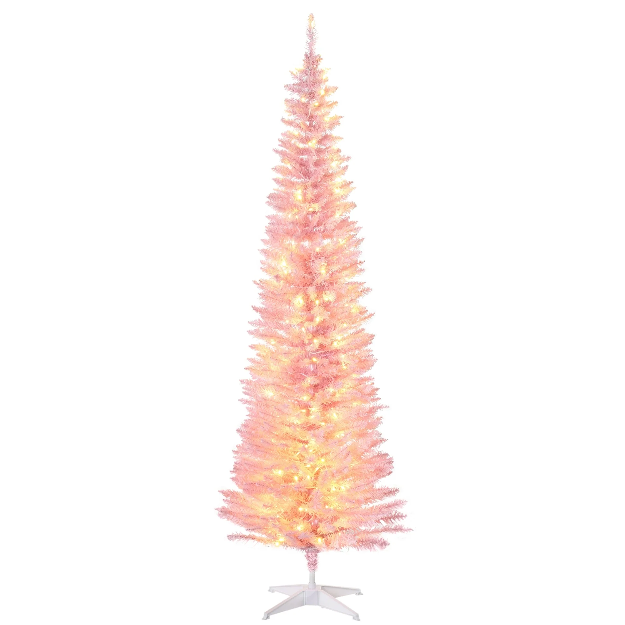 7ft Pink Slim Noble Fir Christmas Tree with 200 Lights for Small Spaces