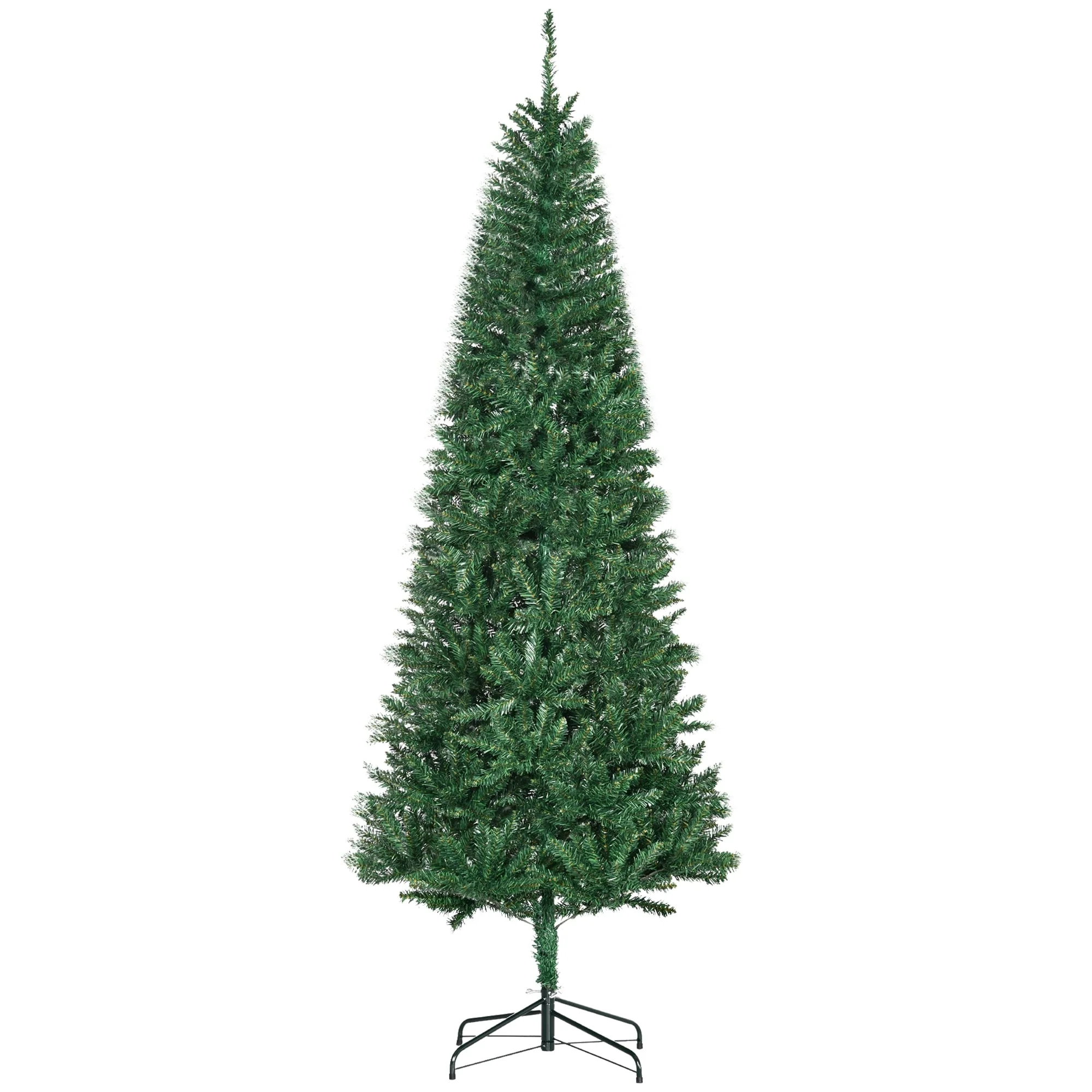 9.5 Ft Pencil Christmas Tree, Unlit Slim Artificial Xmas Tree with Realistic Branches, Pine Cones & Metal Stand