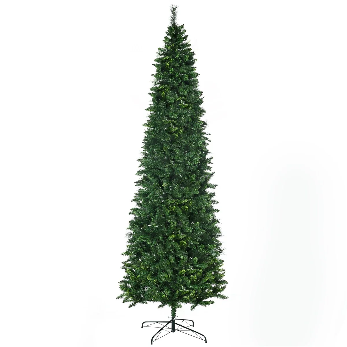 HOMCOM 9ft Tall Pencil Artificial Christmas Tree Holiday Decor with 1298 Branches, Auto Open, Steel Base, Pine Needles, Green