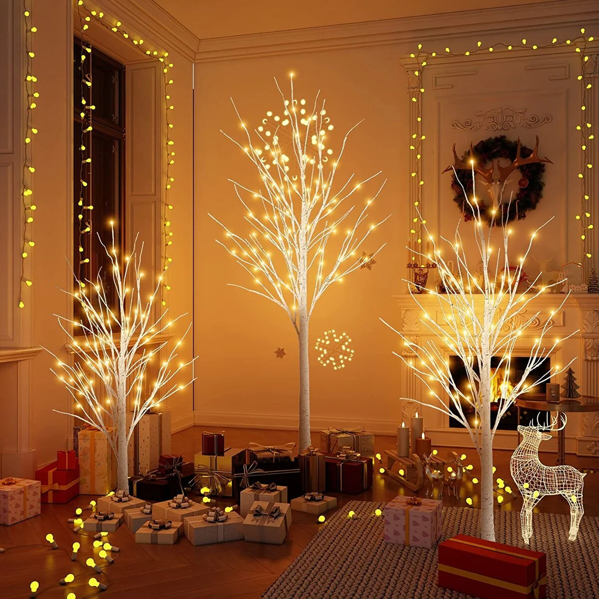 Set of 3 Lighted Birch Tree 4FT 5FT and 6FT, LED Artificial Tree with Warm LED Lights for Yard, Garden, Home, Party