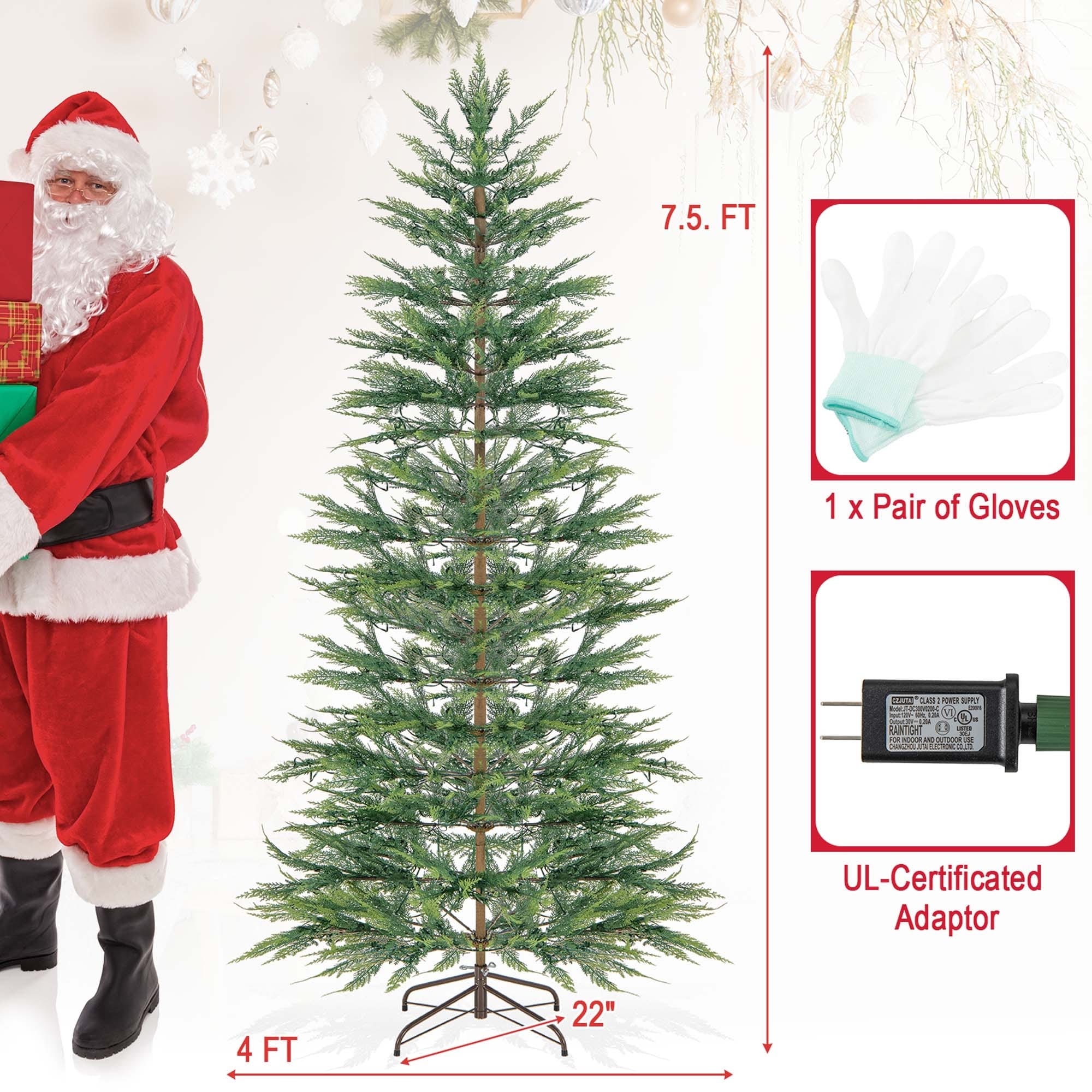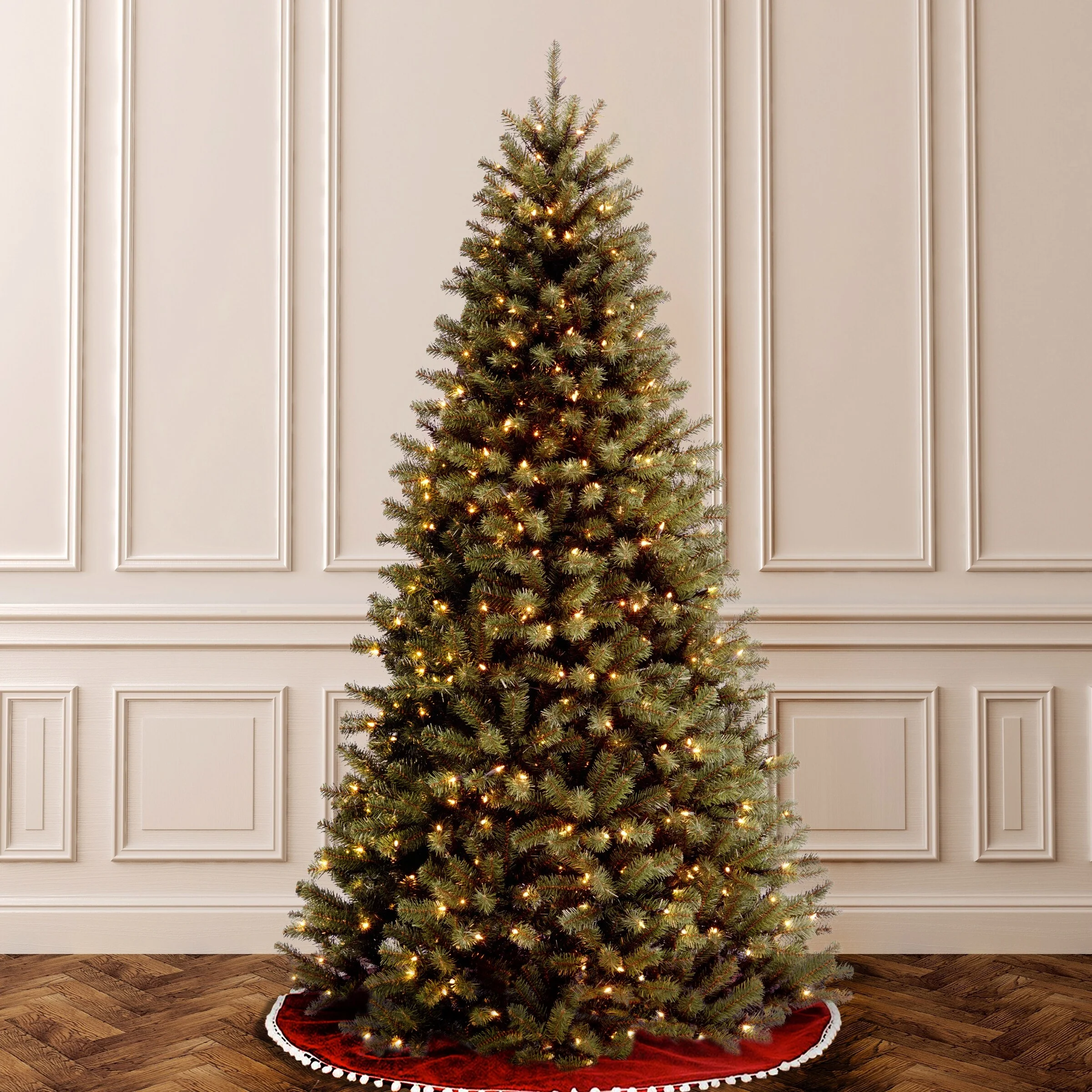 Glitzhome 7.5ft/9ft Pre-Lit Evergreen Slim Fir Artificial Christmas Tree With Strawberry Lights