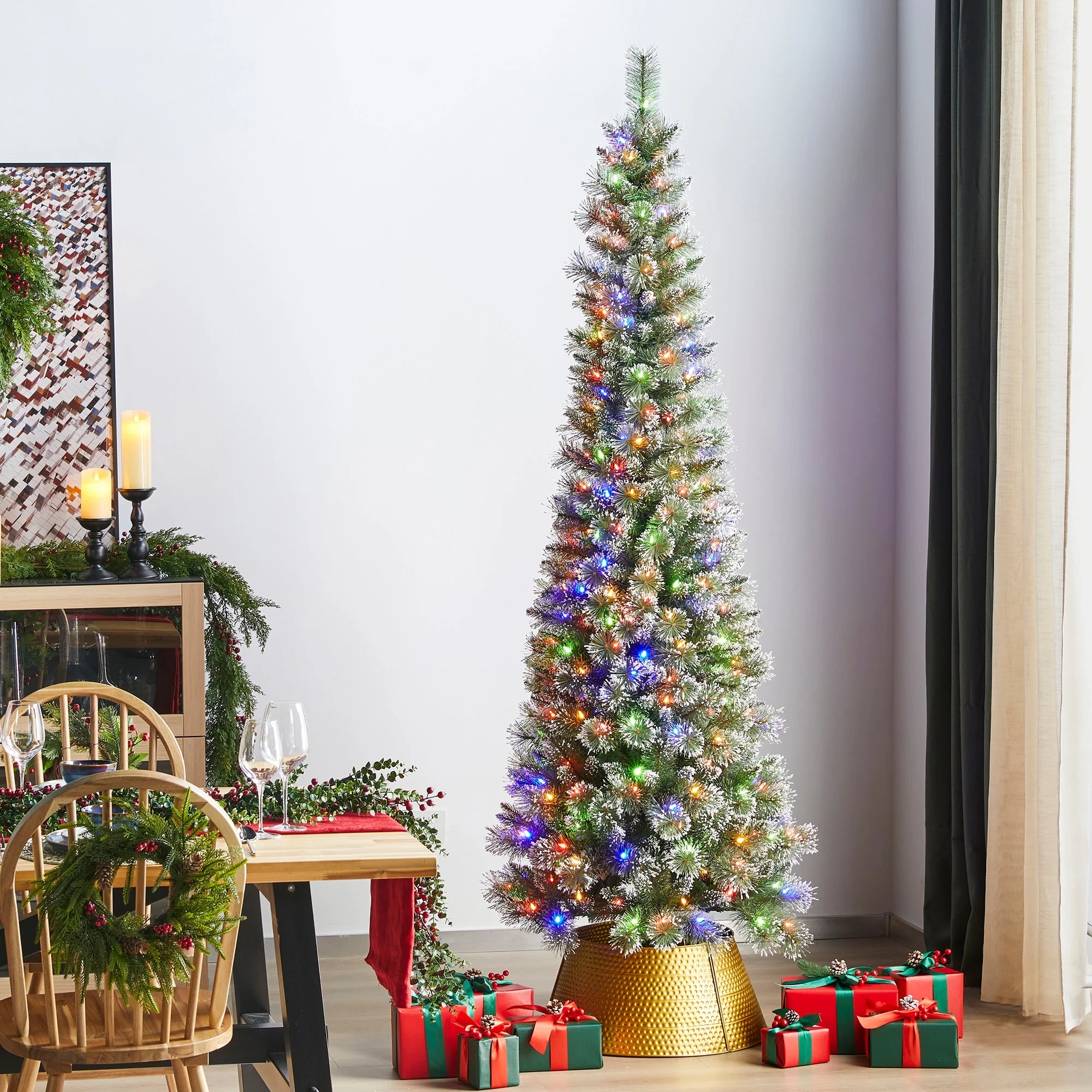 National Tree Company 7.5 ft. Tacoma Pine Pencil Slim Tree with 350 Clear Lights - 7.5 Foot