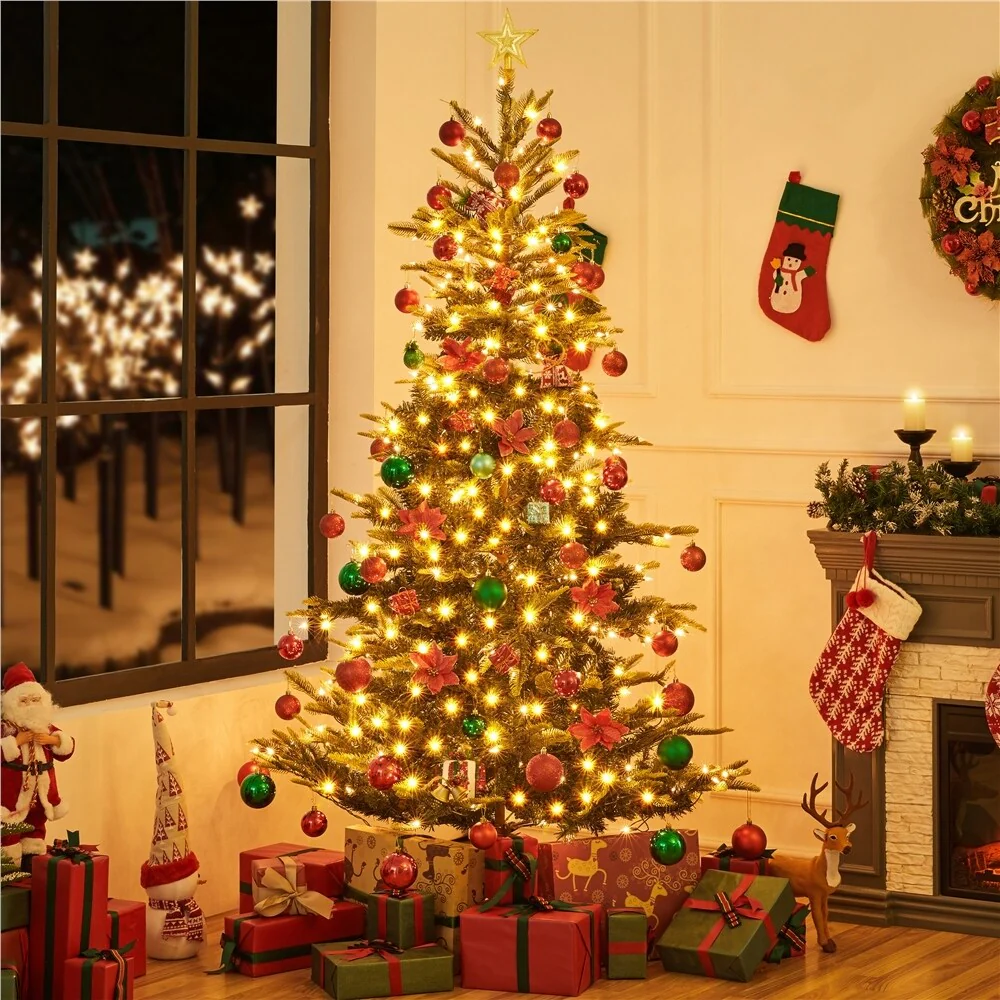 Yaheetech Pre-Lit Christmas Tree Artificial Christmas Tree with Warm White Incandescent Lights