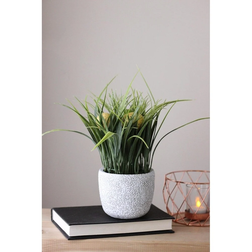 Extremely realistic plant is nestled in a stone look ceramic pot with faux moss