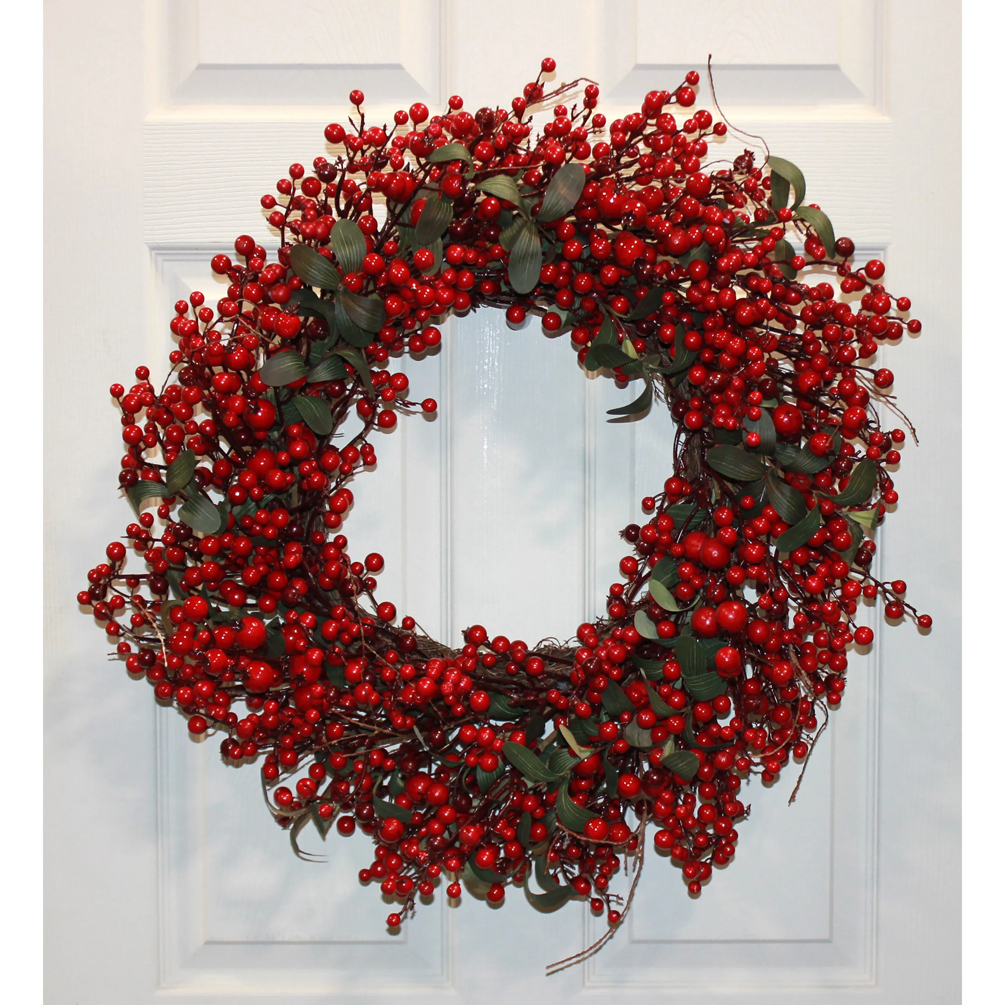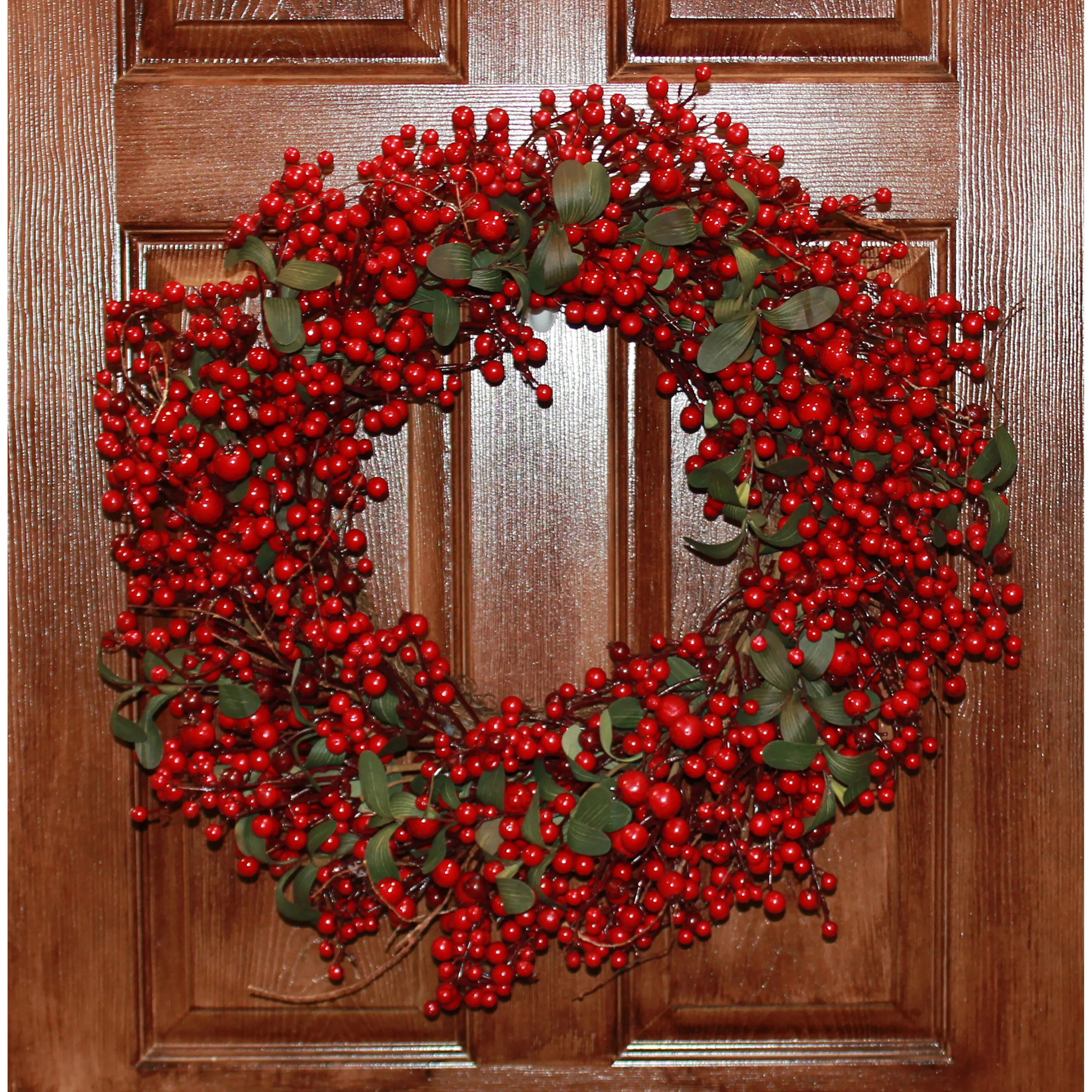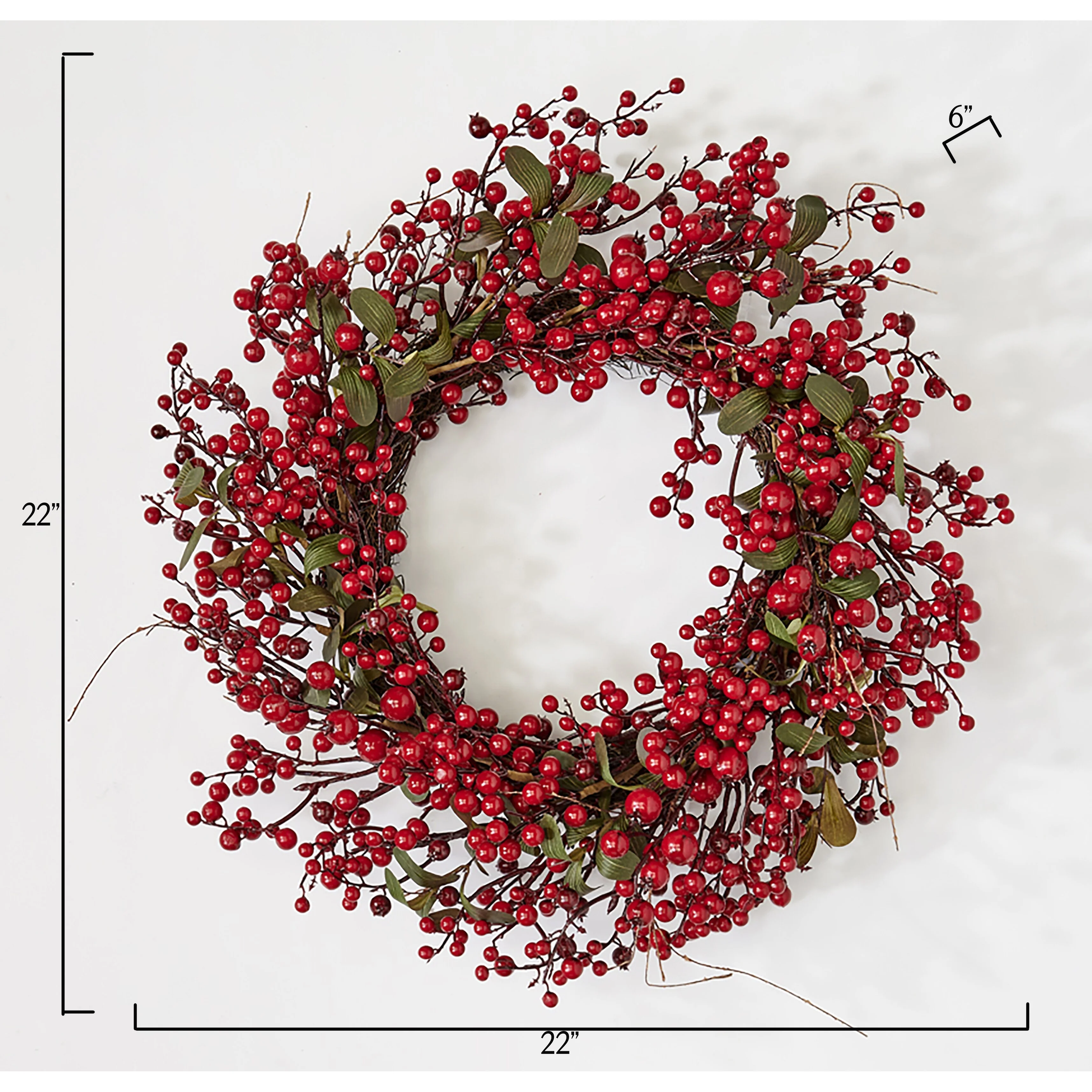 Welcome the holiday season with this 22" Artificial Christmas Red Holly Berry and Green Leaves Wreath. Set on a natural twig base, it features realistic berries and lush green leaves. This wreath makes a stunning addition to your front door or wall decor, bringing festive charm and timeless beauty to any space.