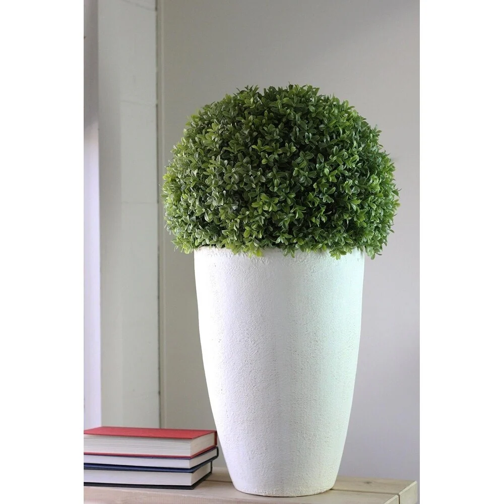 This gorgeous plant offers the beauty of greenery without the upkeep Featuring a beautiful boxwood ball atop a large ceramic white pot made to look like stone