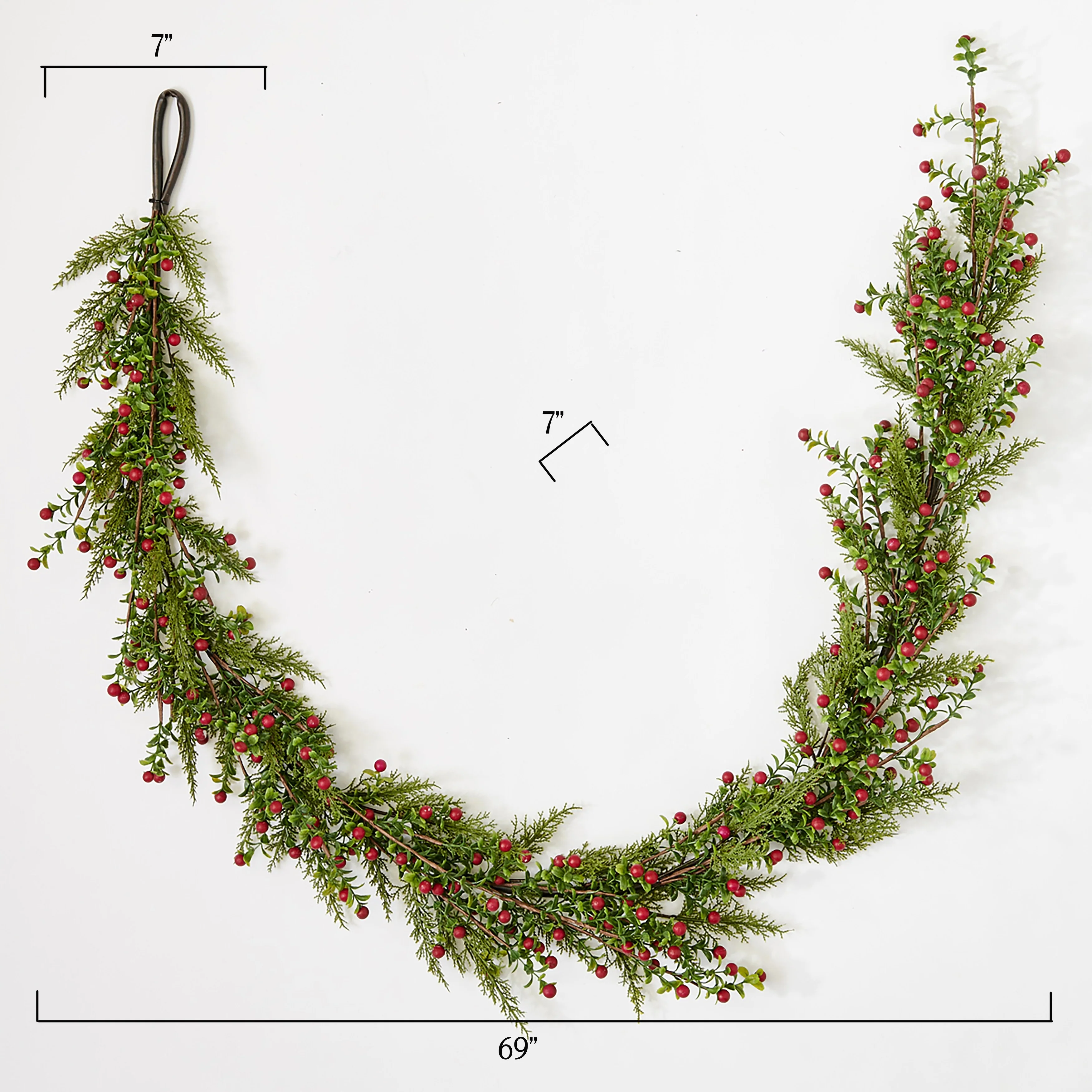 Bring timeless elegance to your holiday decor with the 69" Artificial Christmas Boxwood & Berry Garland. Featuring lifelike berries and vibrant green leaves, this garland is wired for easy shaping to fit your desired display. Perfect for draping over mantels, staircases, or doorways, it adds a natural, festive charm to any space. Durable and beautiful, this garland is a must-have for a classic Christmas look.
