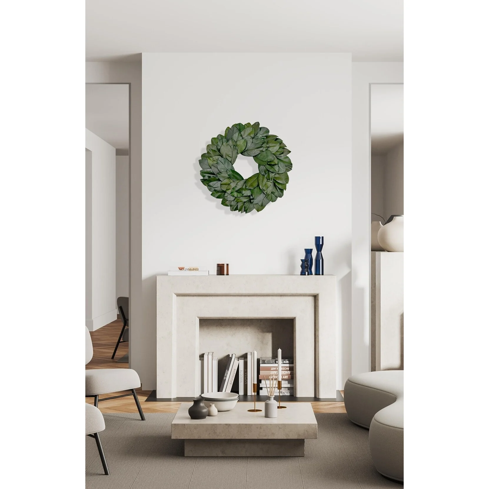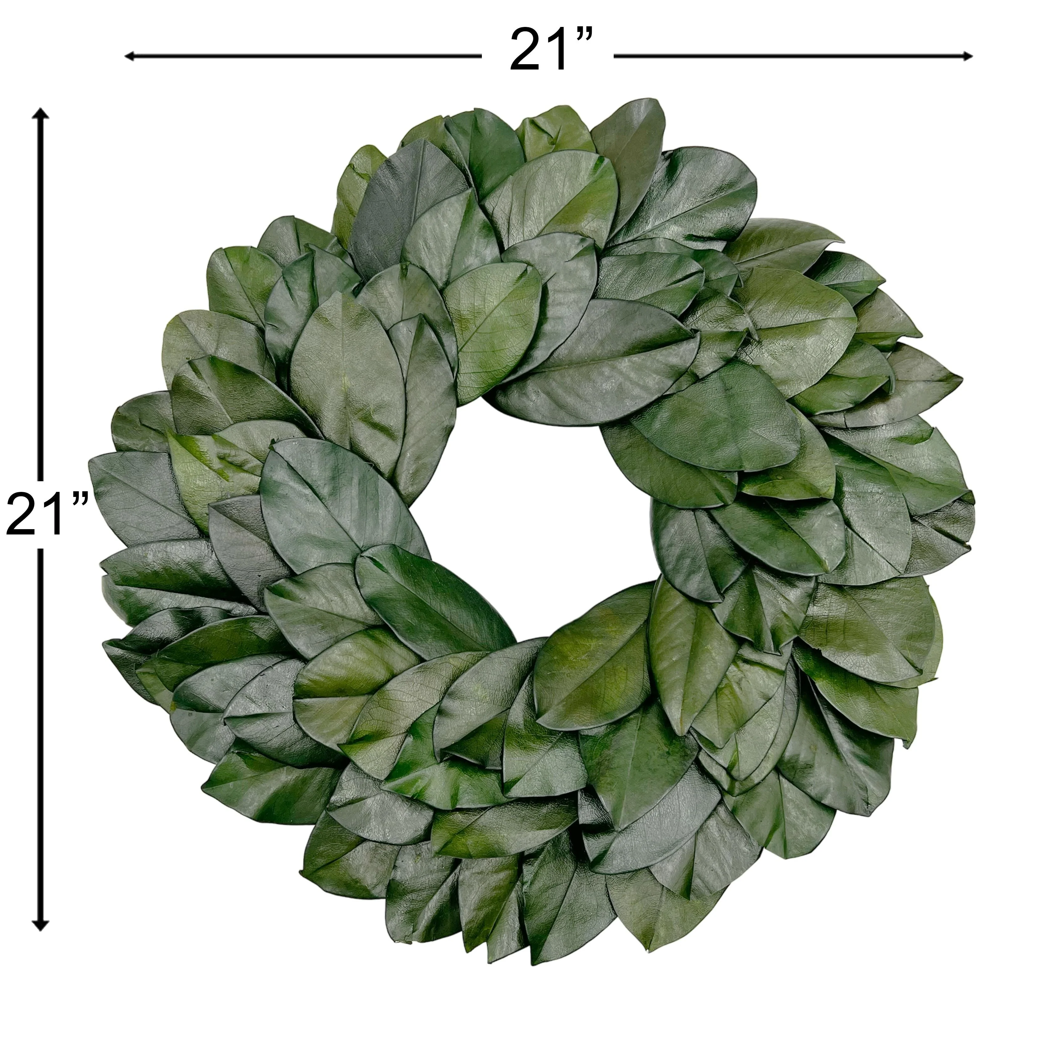 The Preserved Decorative Real Magnolia Wreath, spanning 21 inches in diameter, is a symbol of natural elegance and timeless beauty. Crafted from authentic magnolia leaves, carefully preserved to retain their rich green hue and glossy texture, this wreath exudes sophistication and charm. Its lush foliage and classic design make it a versatile accent for any space, whether hung on a door, wall, or used as a centerpiece. Infuse your home with the refreshing scent and understated grace of magnolia with this exquisite decor piece.