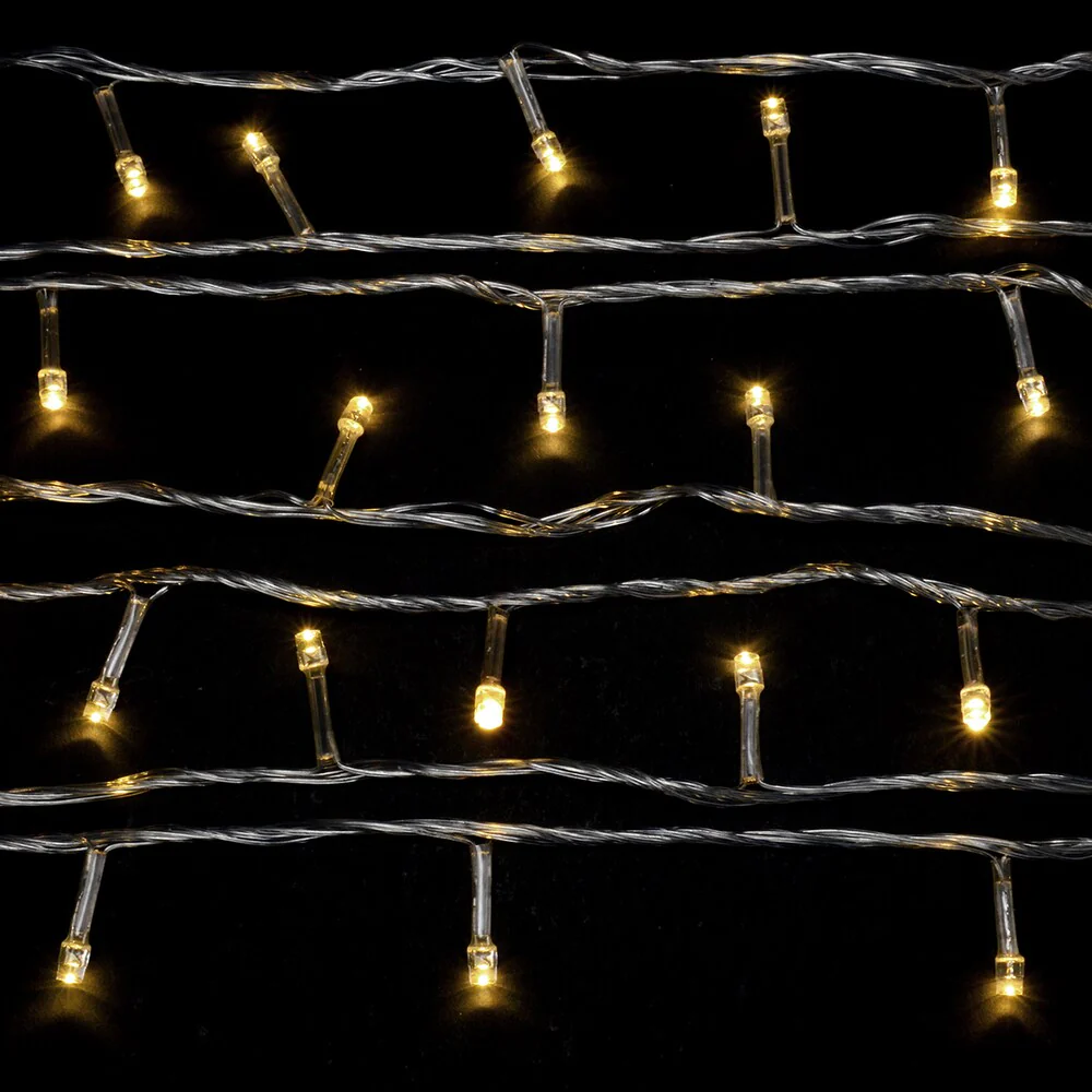 Create a jolly holiday atmosphere with these brilliantly colored lights. This string of light contains 100 individual bulbs, making it a fun and festive addition to your holiday decorating tool chest. The thick cord adds durability to the design to deliver maximum functionality season after season, and the lights feature eight modes for added fun and variety.