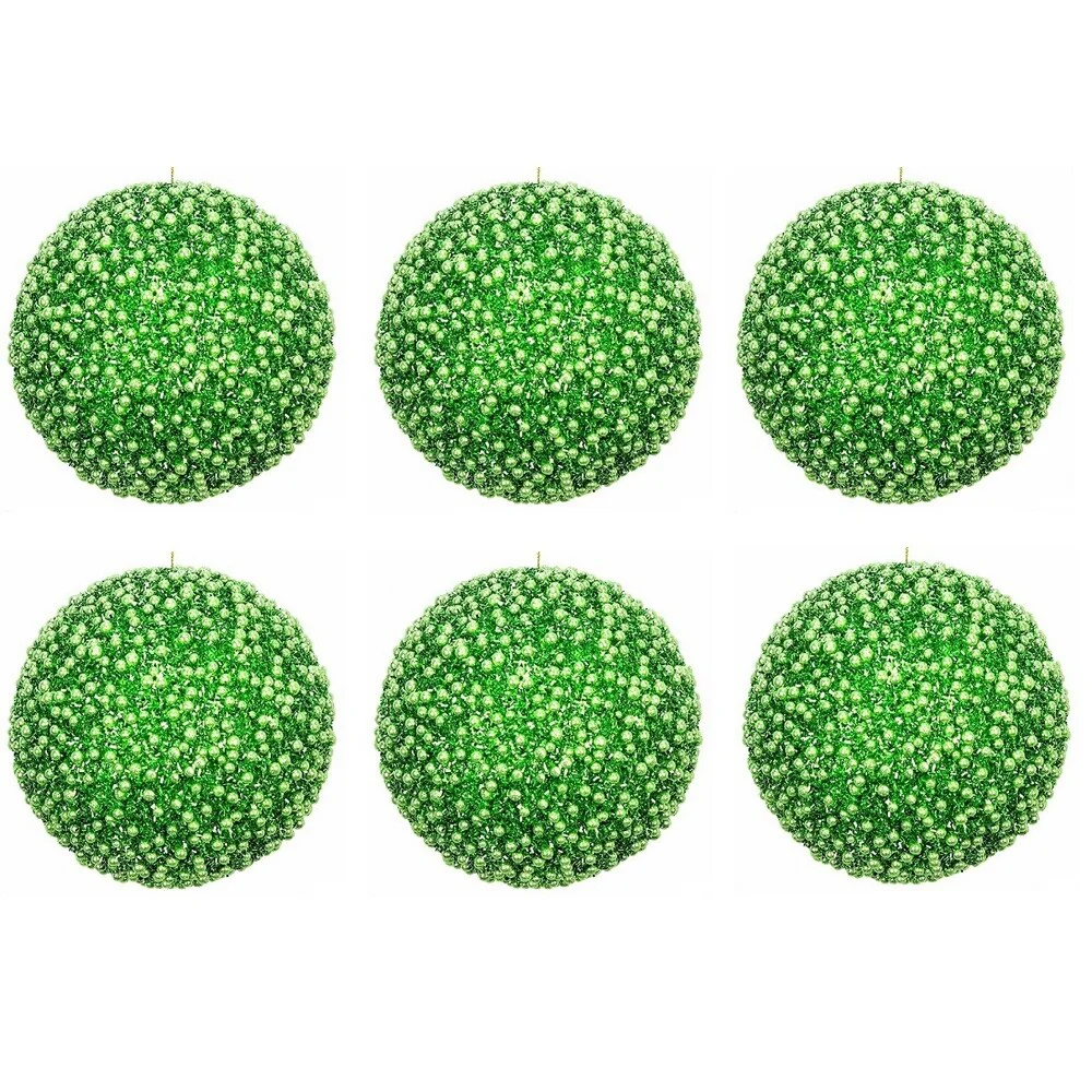 Green Plastic 4-inch Glitter Pearls Christmas Ornament Ball (6 Pack)