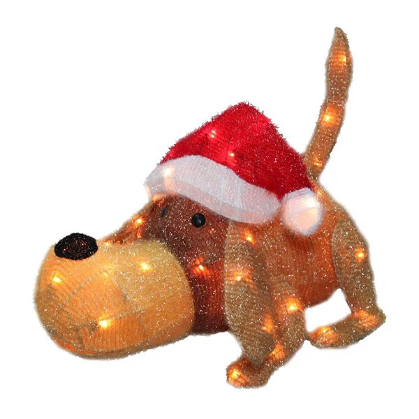 20 in. H Pre-Lit Clear Mini Lights Christmas Puppy