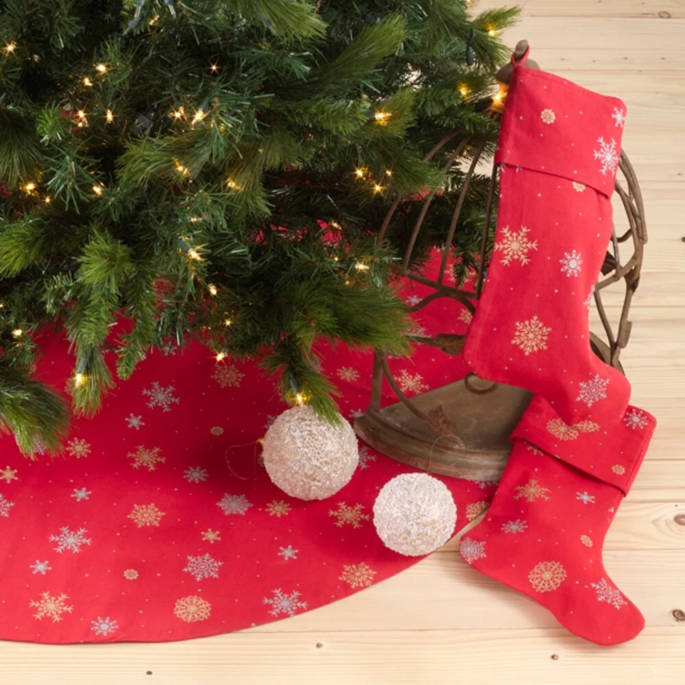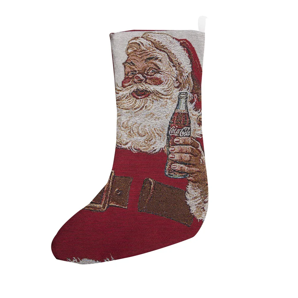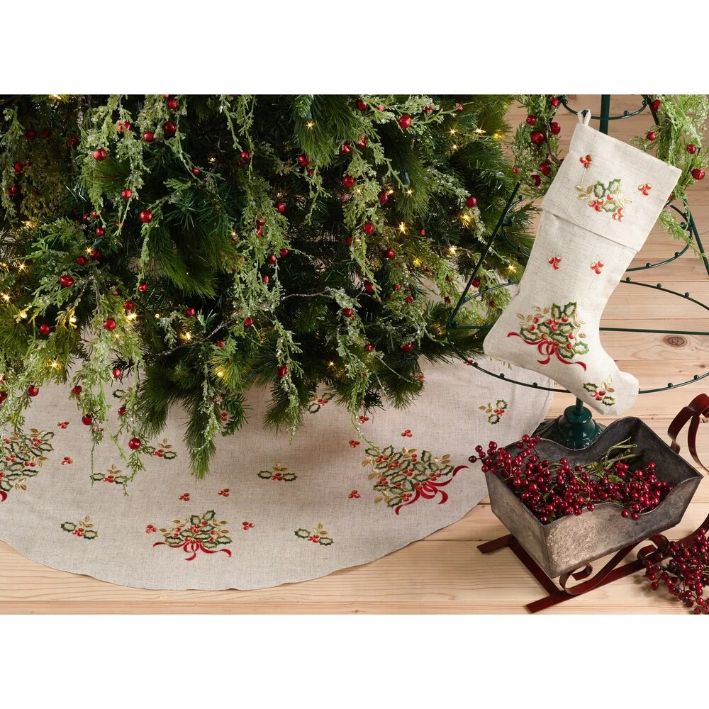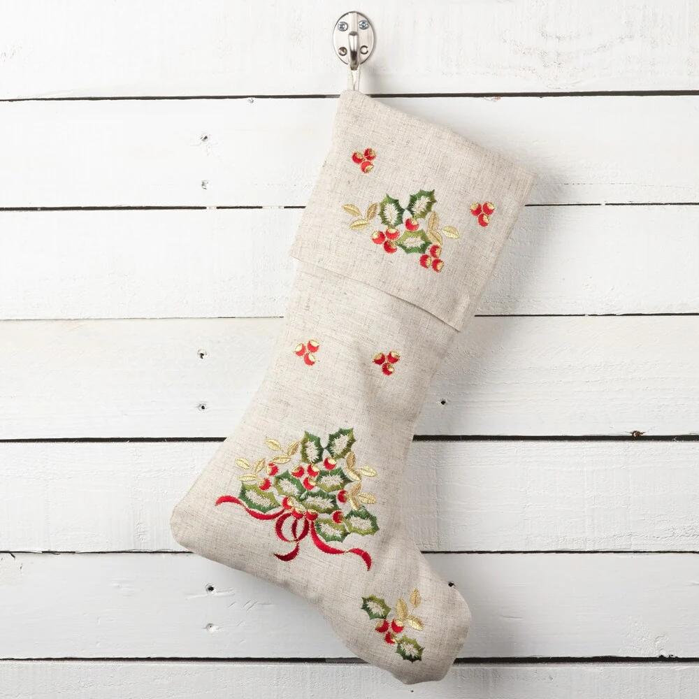 Embroidered Holly Design Decorative Linen Blend Christmas Stocking