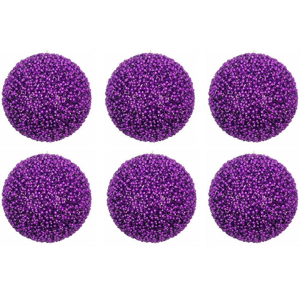 4-inch Glitter Pearls Christmas Violet Ornament Ball (Set of 6)