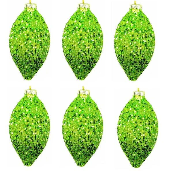 Green Plastic and Glitter 6-inch Oval Christmas Ornaments (Pack of 6)