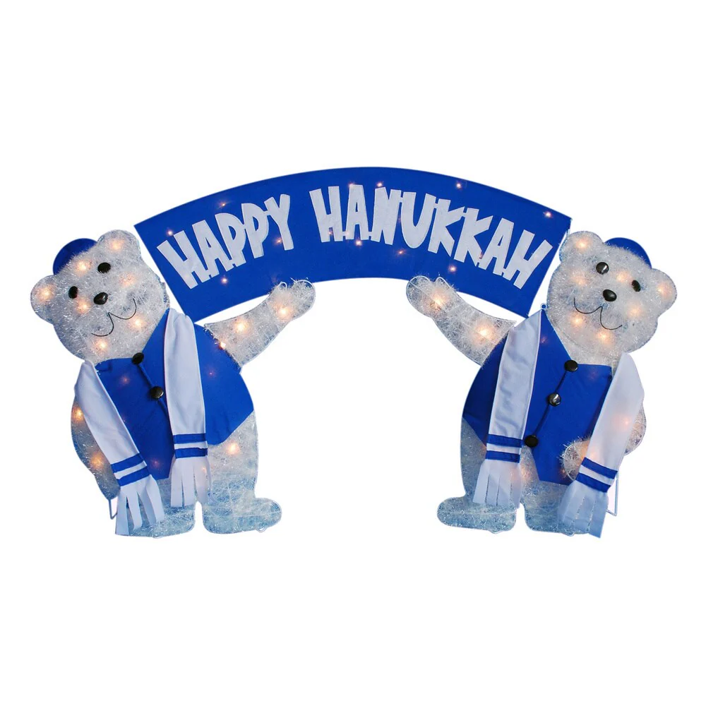 36-inch Greeting Bears and Happy Hanukkah Sign Outdoor Lawn Ornament
