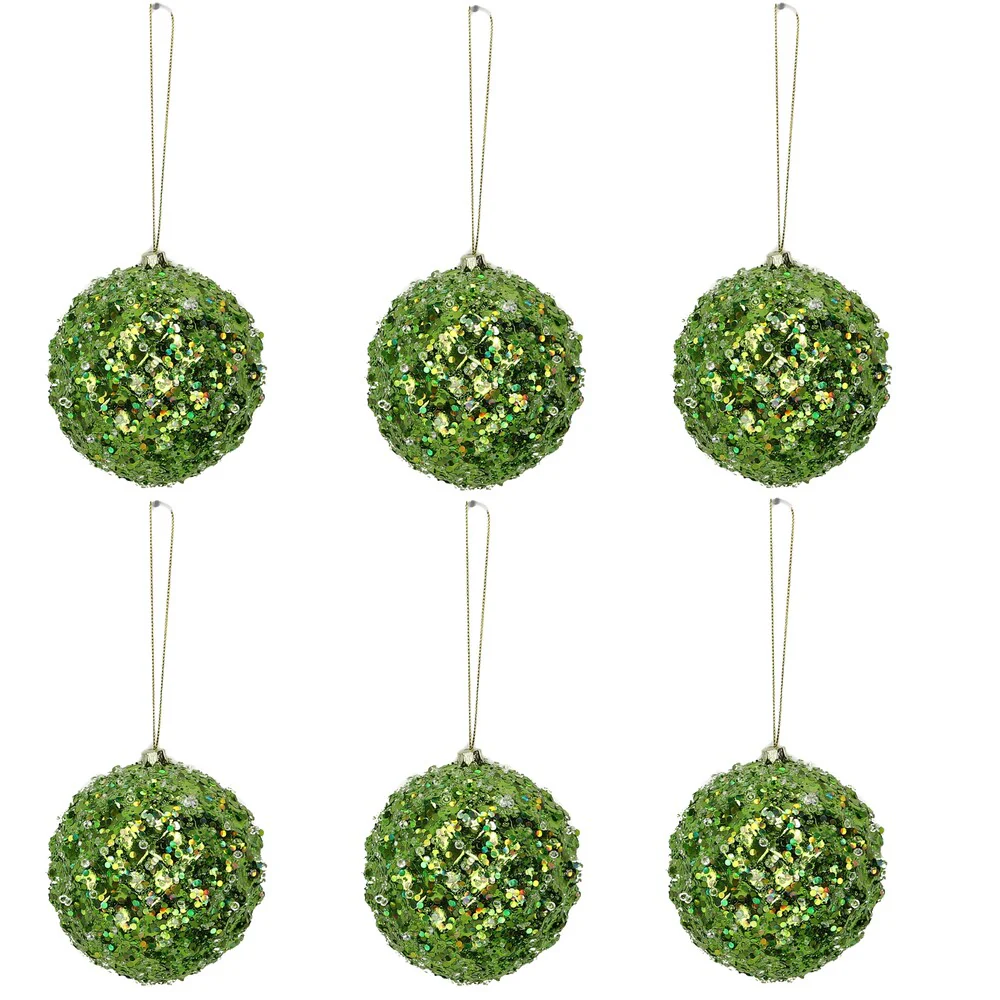 Tiffany Green Plastic 4-inch Beaded Christmas Ornaments (Pack of 6)