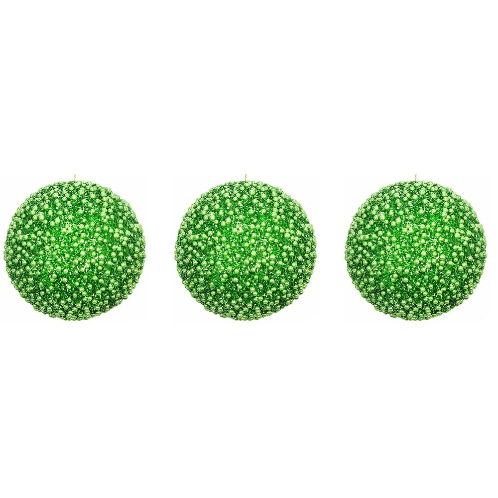 6-inch Glitter Pearls Christmas Green Ornament Ball (Pack of 3)