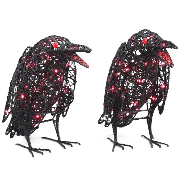 13-inch Lighted Wire Black Ravens (Set of 2)