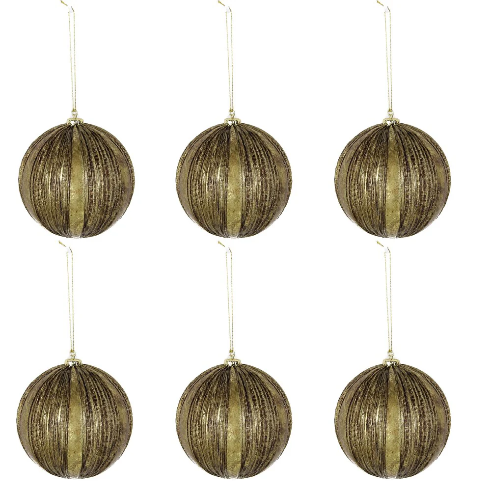 Plastic and Metal 5-inch Ribbed Vintage Christmas Ball Ornaments (Pack of 6)