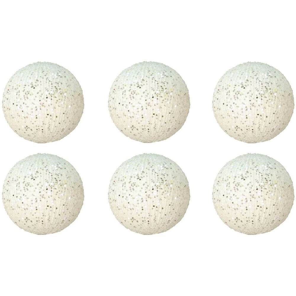 Snow White Plastic 4-inch Glitter Sequin Christmas Ornament Balls (Pack of 6)