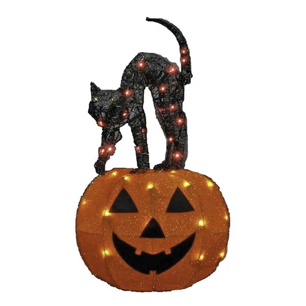 27.5 in. Swaying Webbed Cat on Pumpkin