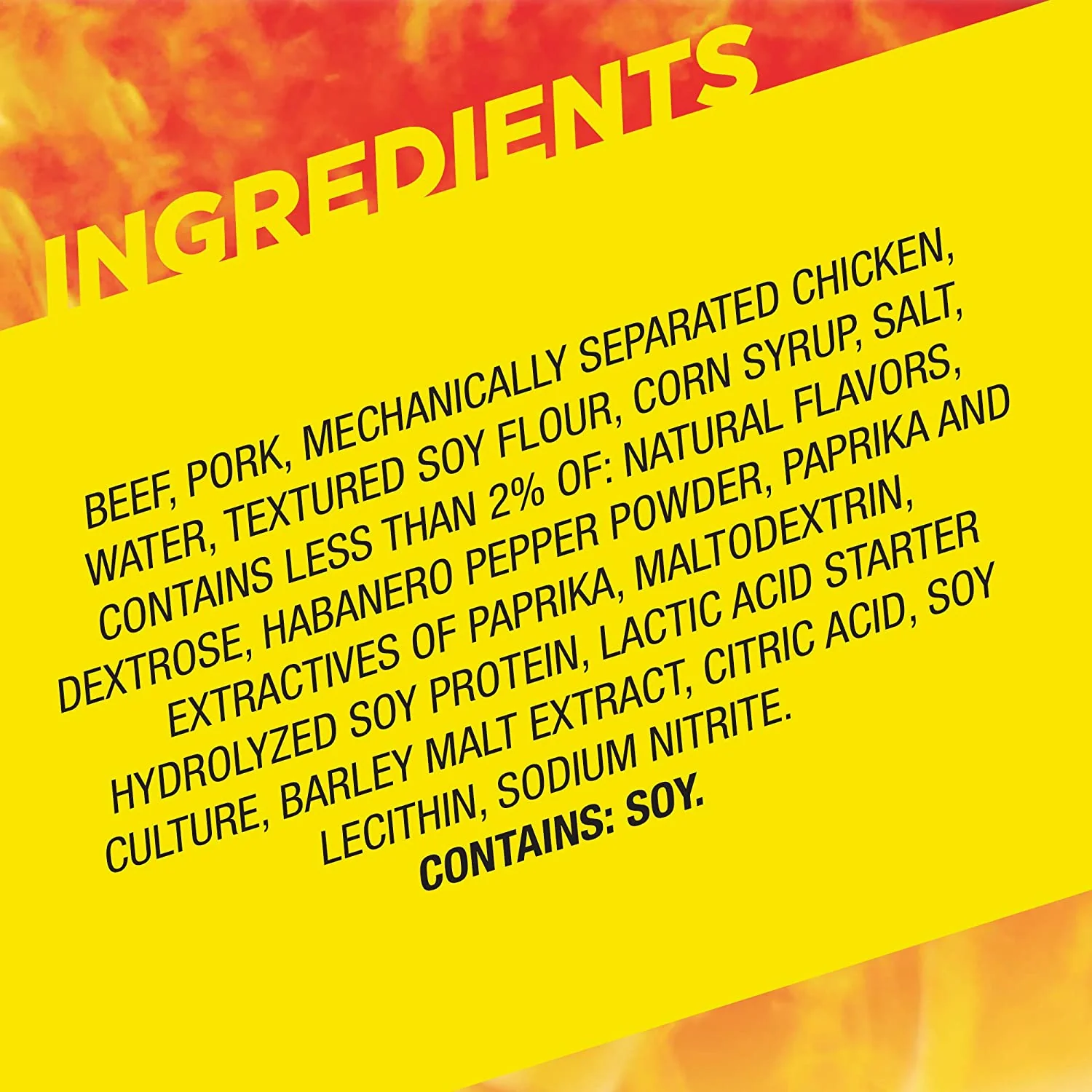 When it comes to snacking, they say size Matters. That’s why Slim Jim Giant hot AF flavor smoked Meat Sticks have big, meaty flavor. Made with beef, pork and chicken, tame the giant meat-lover in you with 6 grams of protein in each serving. Each spicy snack stick comes individually wrapped in a 24-count box, So you can enjoy a savory snack anywhere you want. And then there's the heat. When we say hot AF, we mean It. So, go ahead, and fill your kitchen pantry with this spicy treat. We dare you. Don’t wait 'til that gigantic hunger comes calling; snap into a giant Slim Jim meat stick and snack big.