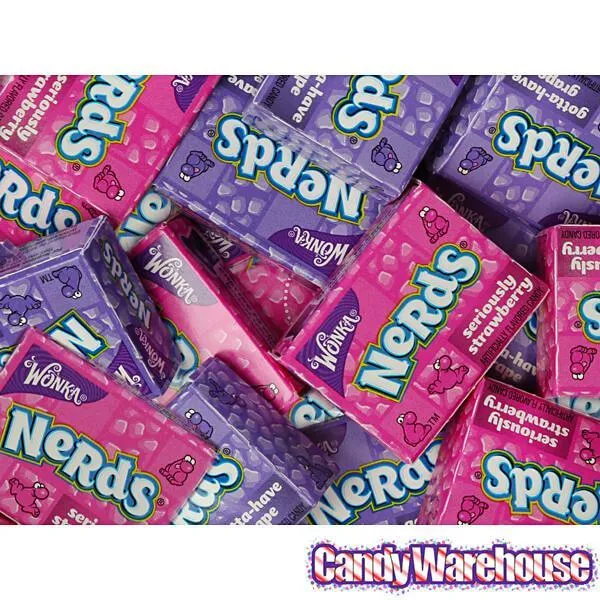 Gift box contains 12 ounces of Wonka Grape and Strawberry Nerds Candy.