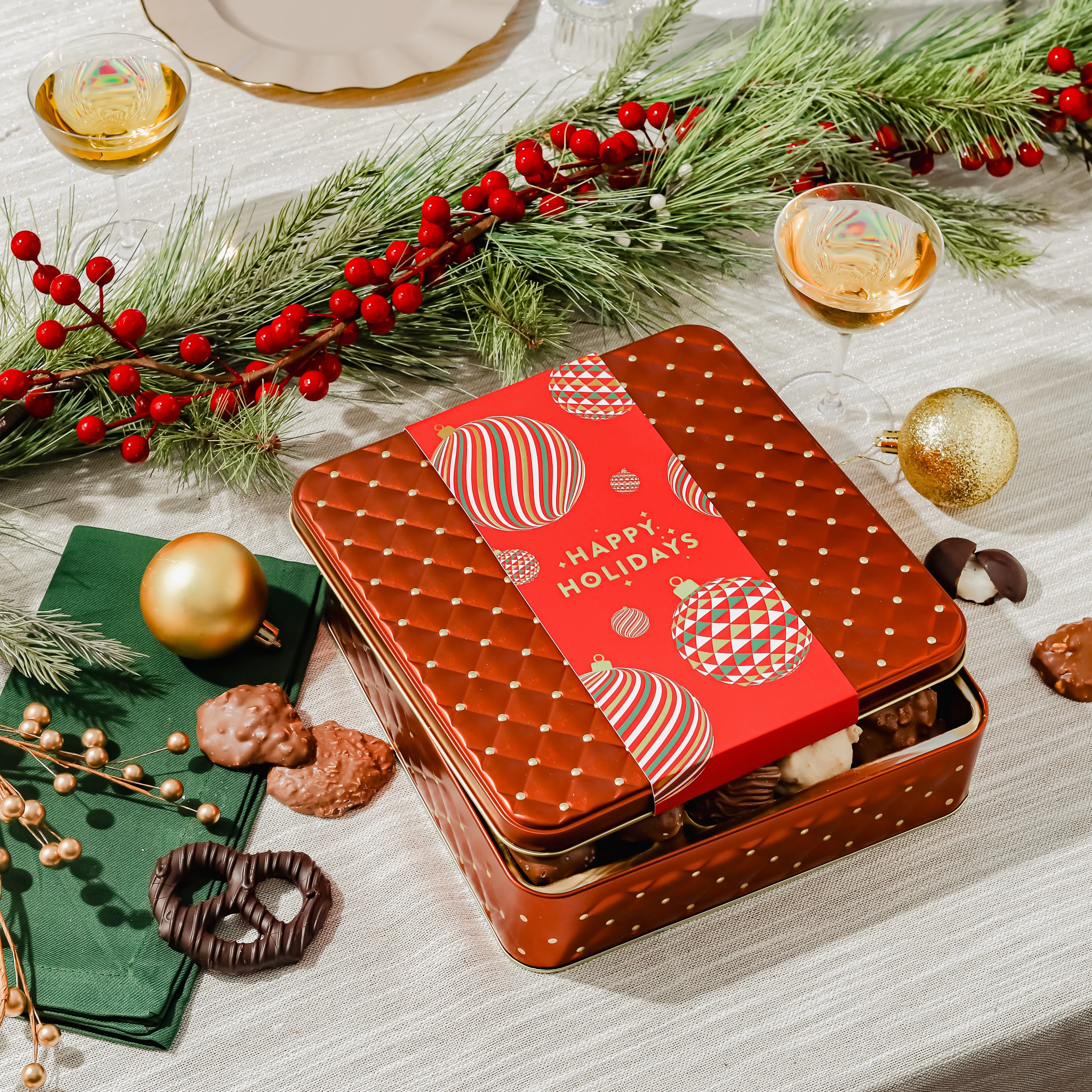 It’s a batch made in heaven! This bestseller contains all the creamy goodness of our beloved Belgian white, milk, and dark chocolates with the perfect balance of salty flavors for a winning combination you just can’t resist. Try it for yourself or treat the sweet-and-salty lover in your life (or both). Plus it comes adorned with a special Holiday Sleeve!
