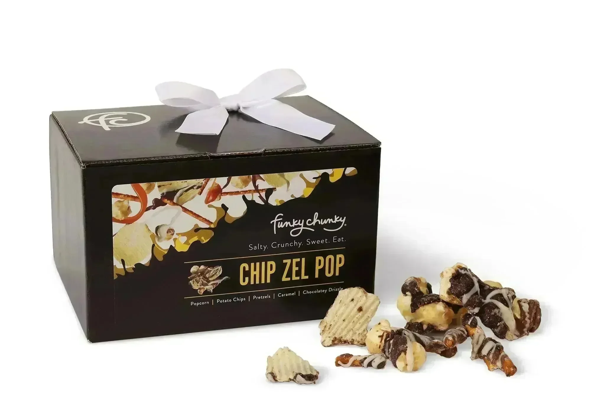 Great to give as a gift! Fill this 10 oz gift box with any flavor of your favorite Funky Chunky popcorn treat! Complete with ribbon, this gift is the perfect “thank you”, “get well soon”, or “Congratulations” gift.