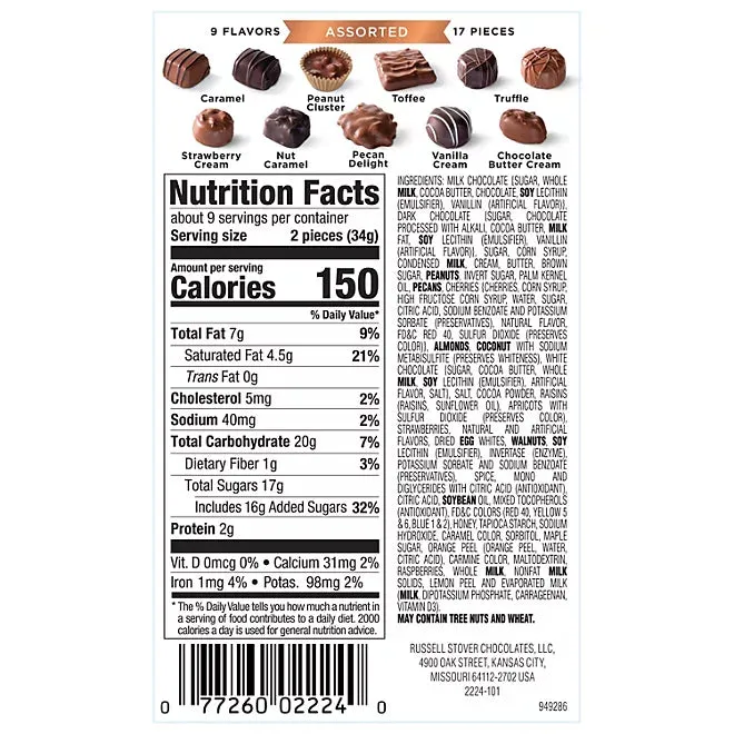 Russell Stover Valentine's Day Velvet Heart Chocolate Gift Box: 10-Ounce Box