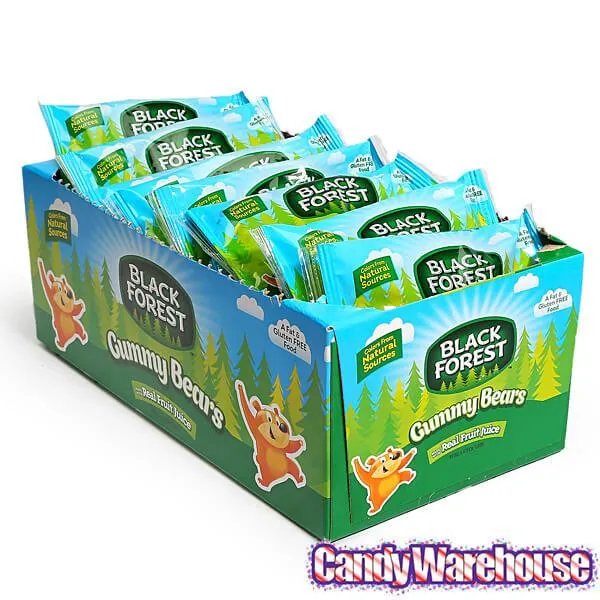 Display box contains 24 Black Forest Gummy Bears Candy Packs, each with a net weight of 1.5 ounces.