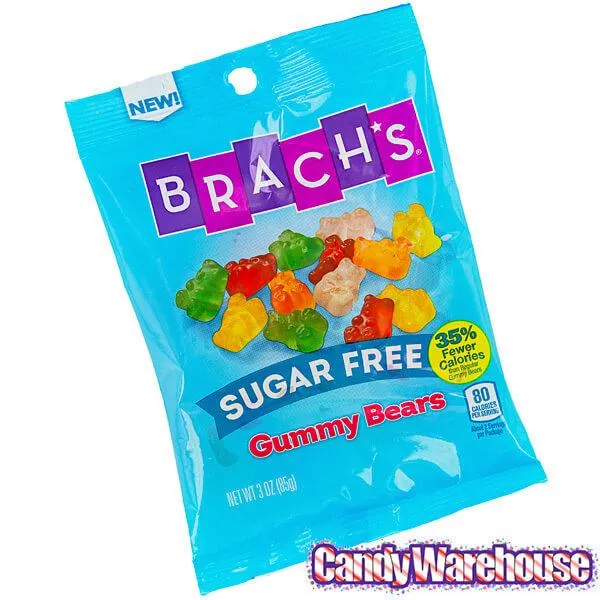 Box contains 2.25 pounds of Brach's Sugar Free Gummy Bears Candy packed in 12 bags, each with a net weight of 3 ounces.