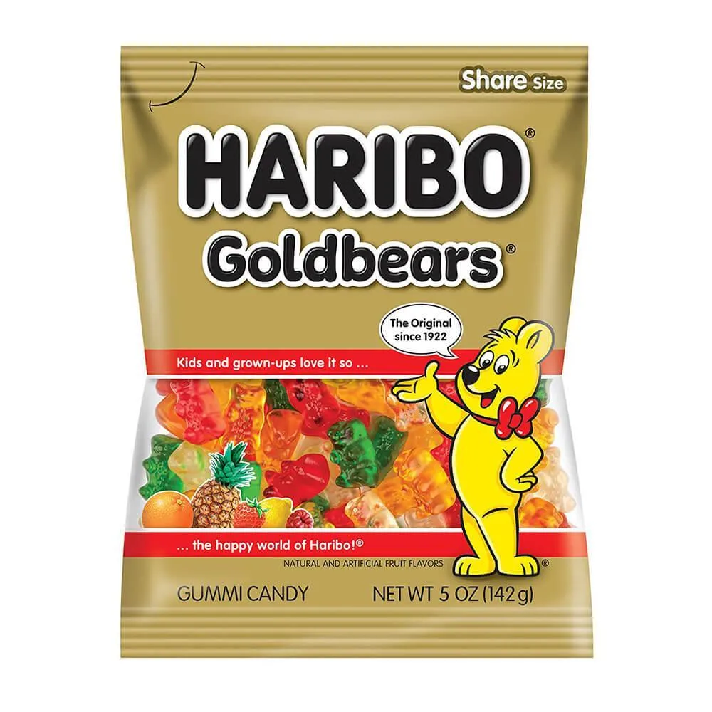 Haribo Gold-Bears Gummy Bears Candy Stand Up Peg Bags: 8-Piece Case