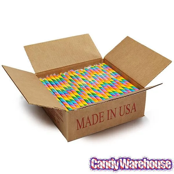 Box contains 100 individually wrapped Cherry Rainbow Circus Sticks Hard Candy Sticks.