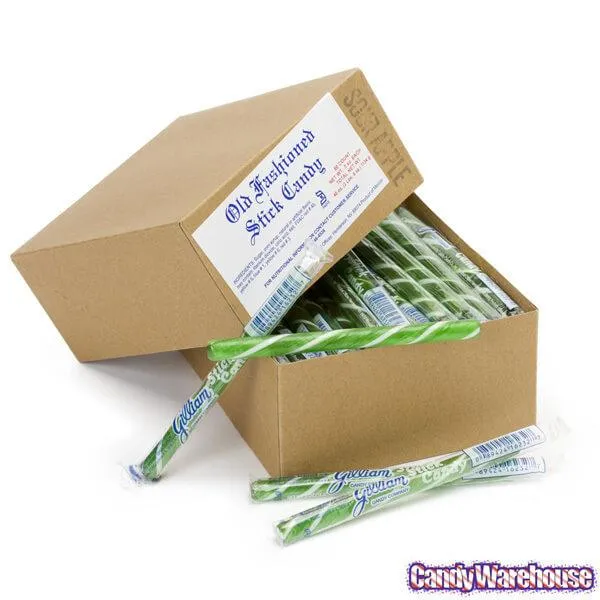 Box contains 80 wrapped Green Apple Gilliam Old Fashioned Hard Candy Sticks.
