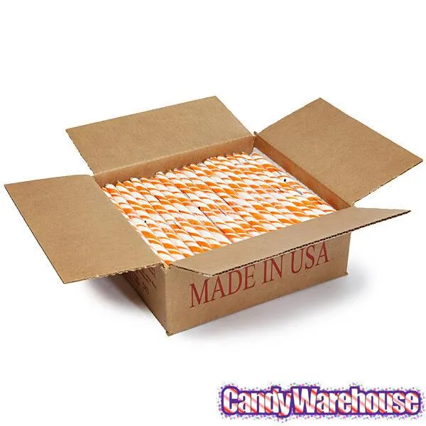 Box contains 100 individually wrapped Orange & White Circus Hard Candy Sticks.