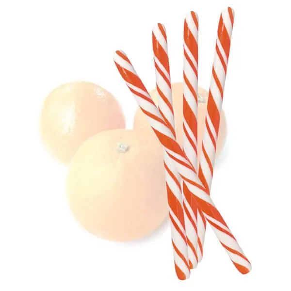 Zesty orange flavors burst from these gourmet hard candy sticks featuring twirled colors of white and orange!