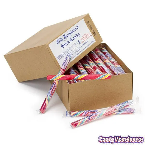 Box contains 80 wrapped Passion Fruit Gilliam Old Fashioned Hard Candy Sticks.