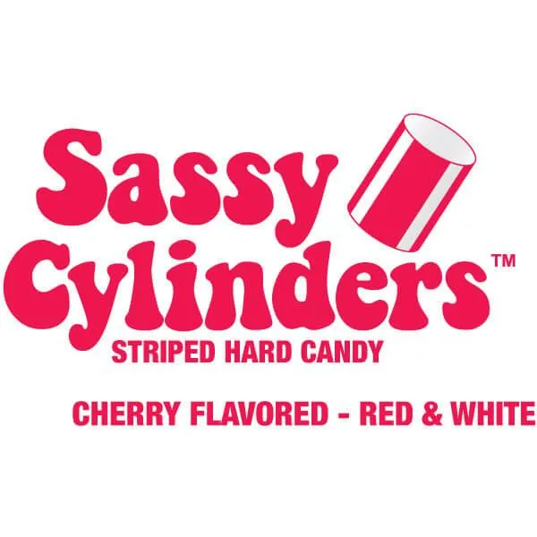 Bag contains 5 pounds of Red Sassy Cylinders Striped Candy.