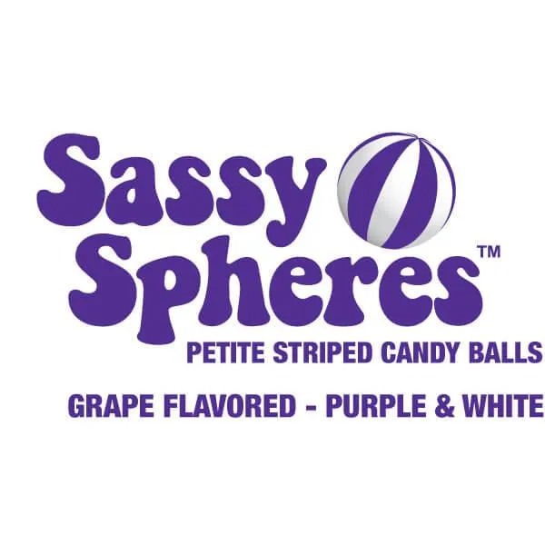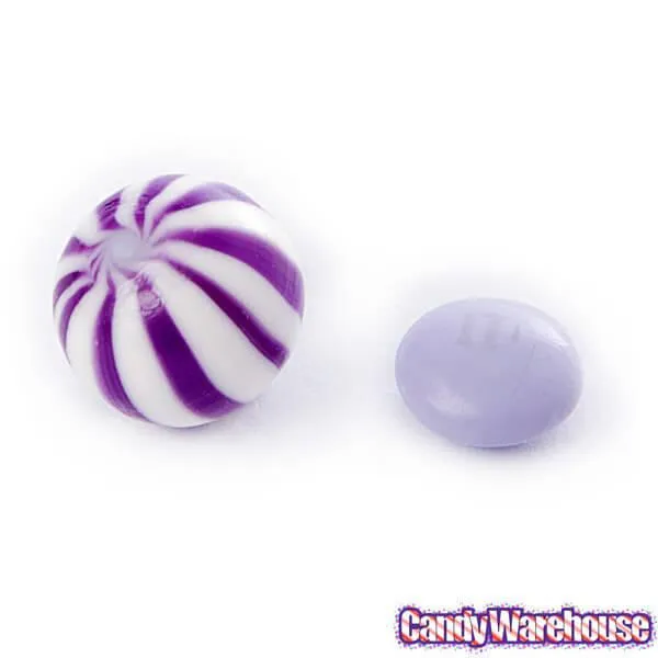 Bag contains 5 pounds of Purple Sassy Spheres Petite Striped Candy Balls.